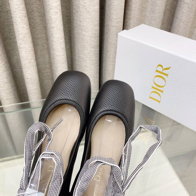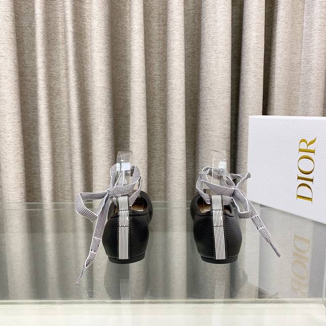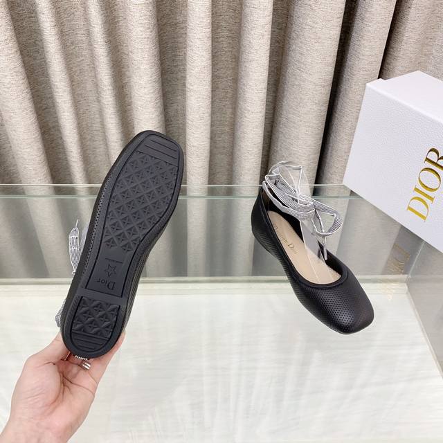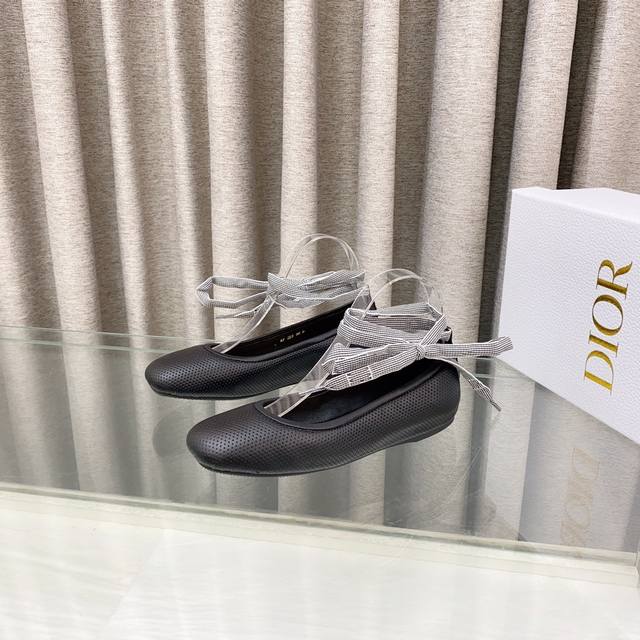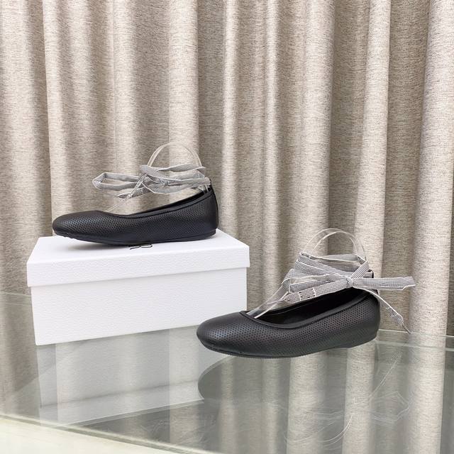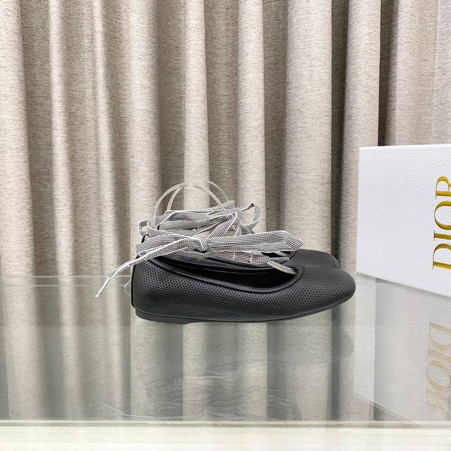 迪奥 Dior 2025春夏新款D-Journey冲孔芭蕾舞娃娃女单鞋 Cd字母Logo织带平底圆头拼色跳舞鞋 市面顶级版本