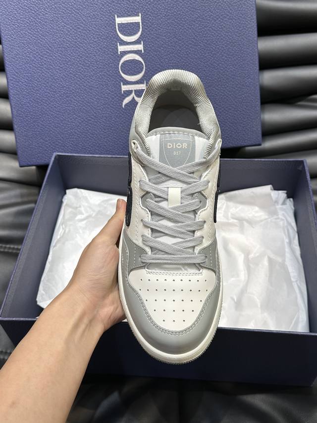 Dio* B57男士低帮运动鞋出货,这款b57 低帮运动鞋是二零二四春季系列新品,重新诠释篮球鞋设计,成为 Dior 的经典单品 采用拼色牛皮革精心制作,搭配撞色绒面革,侧面展示 Cd 标志 鞋舌饰以 Dior B57 标志,各种特色细节提升格调,Cd标志孔眼细节、缉面线和橡胶镶片更是突显其运动风格的动感魅力 带有双色橡胶鞋底,网眼织物里料,棉内里垫脚,上脚舒适透气 可搭配各式服饰,打造精致造型