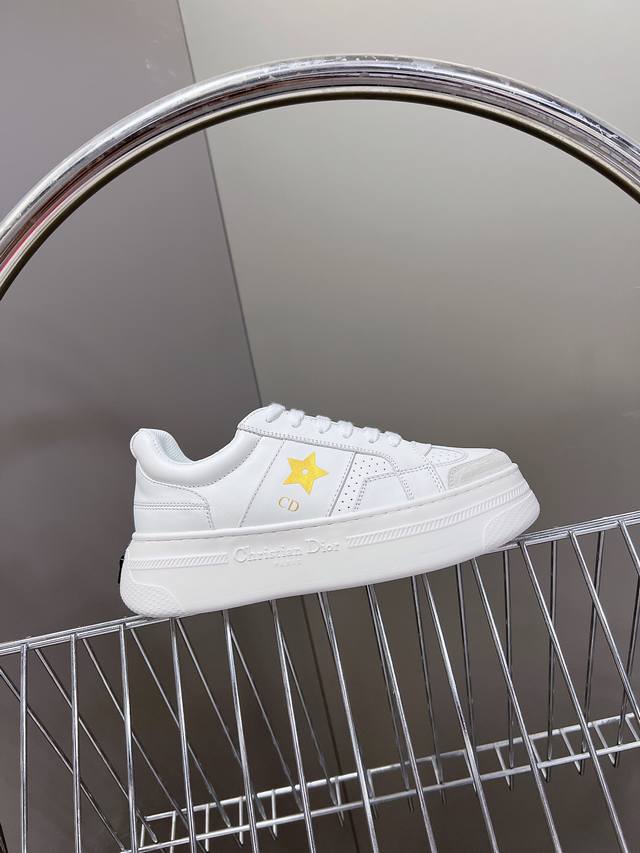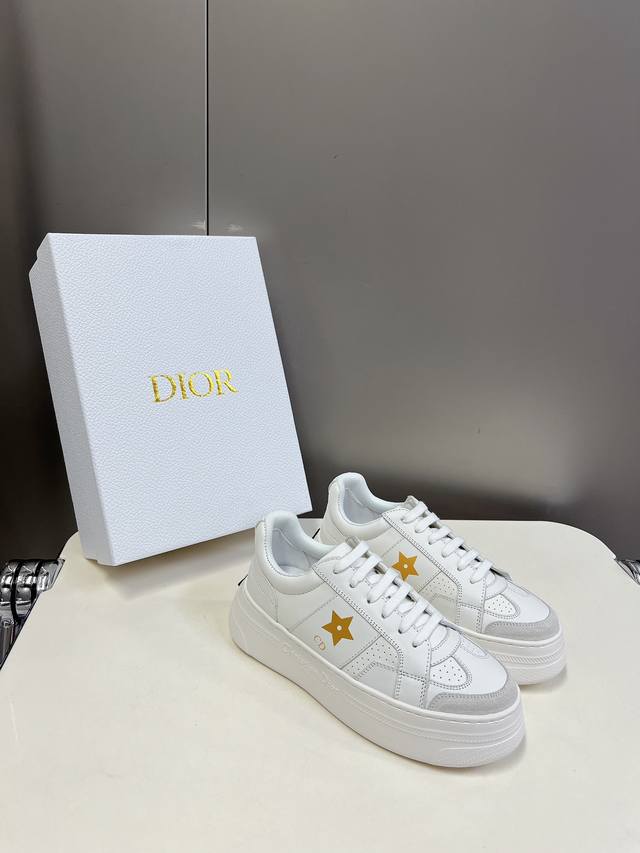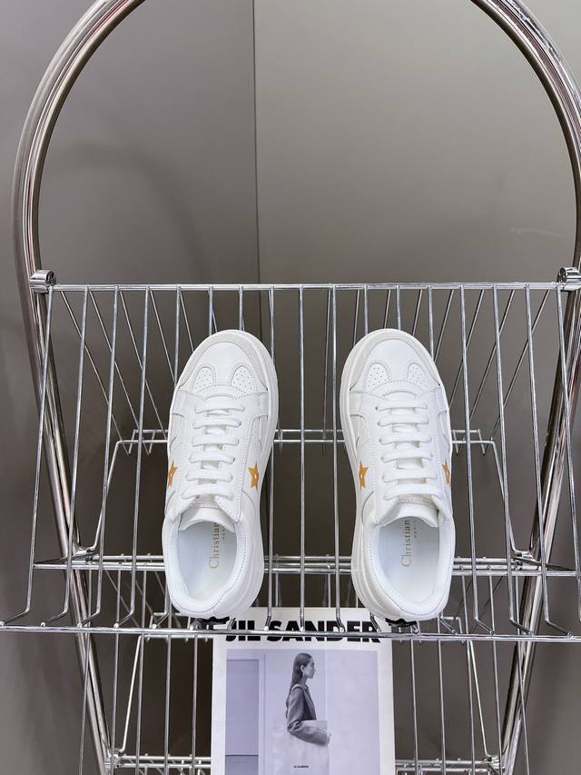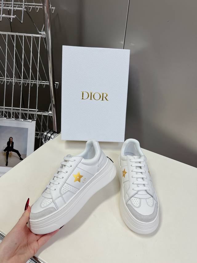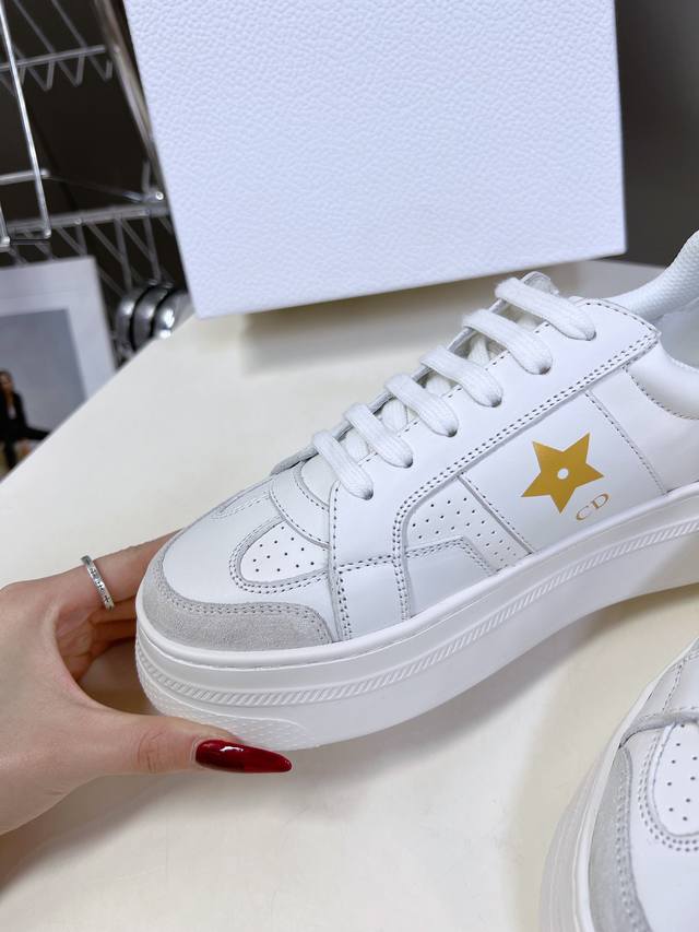 饰以同色调绒面革镶片金属星星装饰鞋带孔眼,提升格调。款式轻盈搭配“Christian Dior”标志薄鞋底,四季皆宜,可与各式休闲造型搭配,增添点睛之笔 经典超耐看 鞋面牛皮拼接 原版Ip 大底高度4Cm