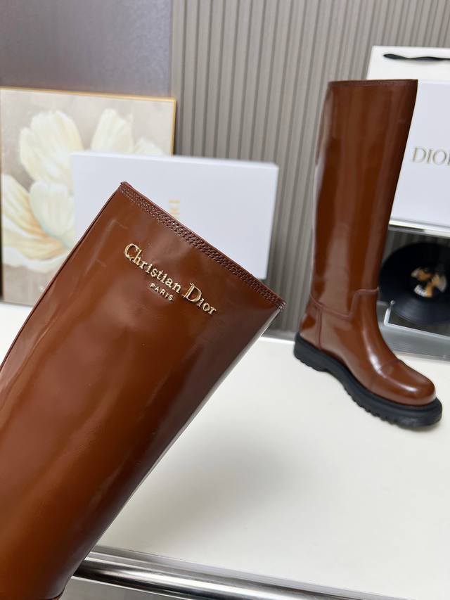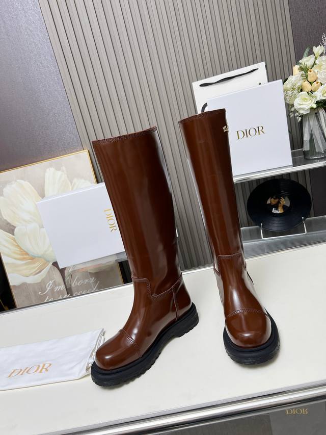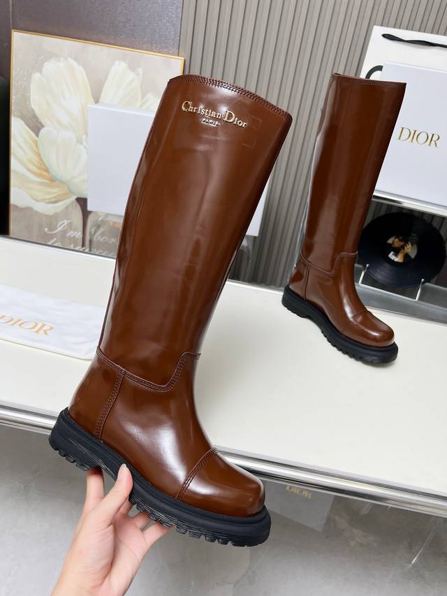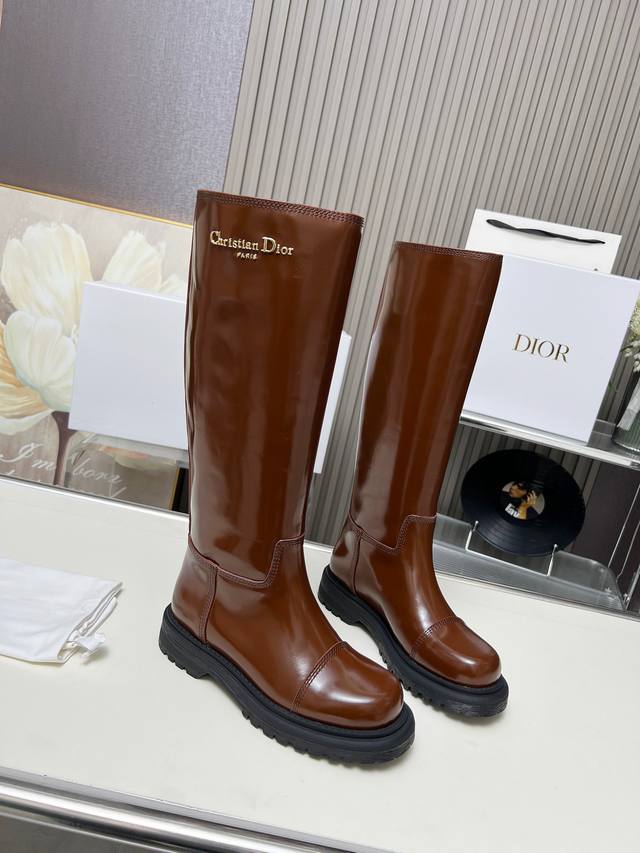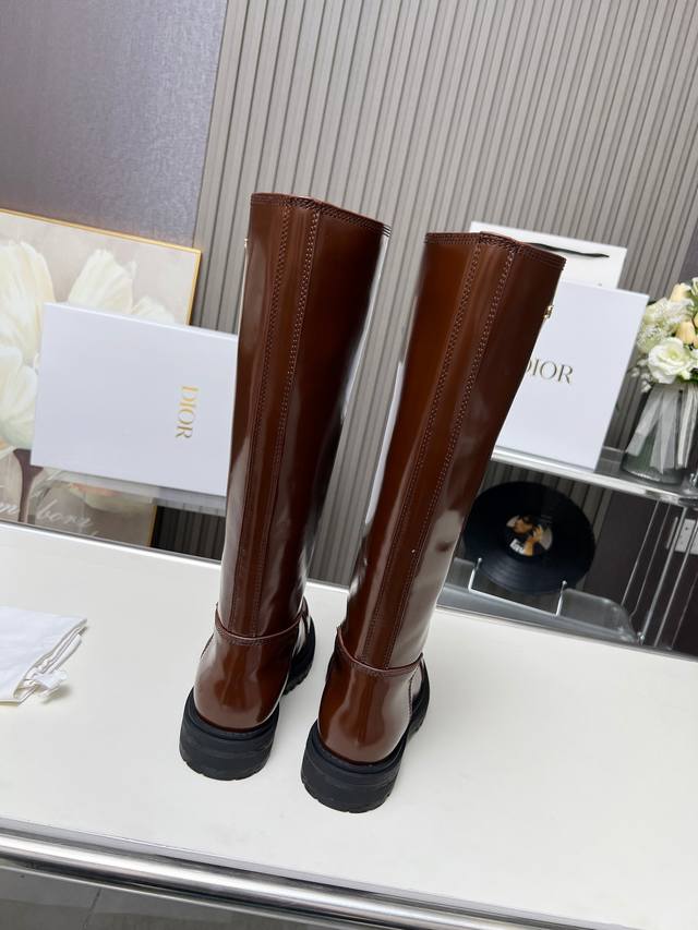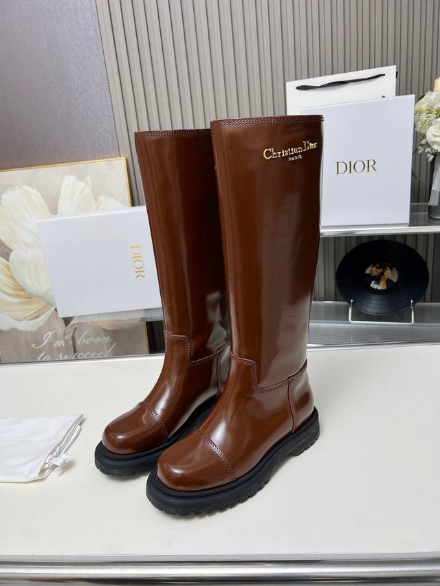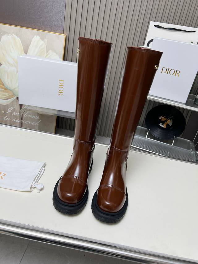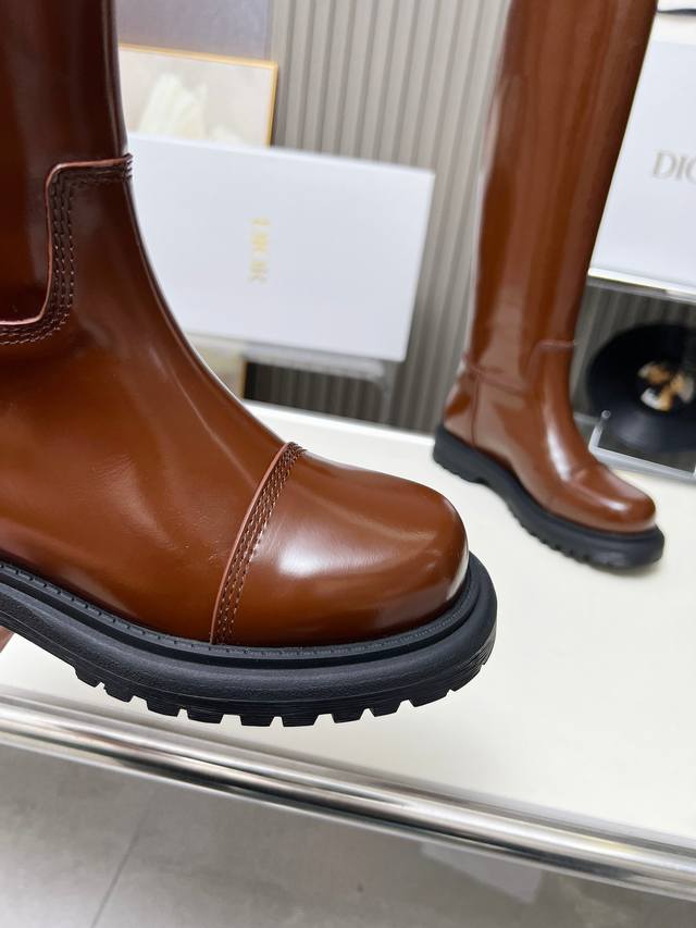 Dior迪奥2025新款靴子 采用别具一格的设计元素打造醒目的外观。采用黑色牛皮革打造,可轻松穿脱。从 Dior Book Tote 手袋汲取灵感,顶部饰以双色