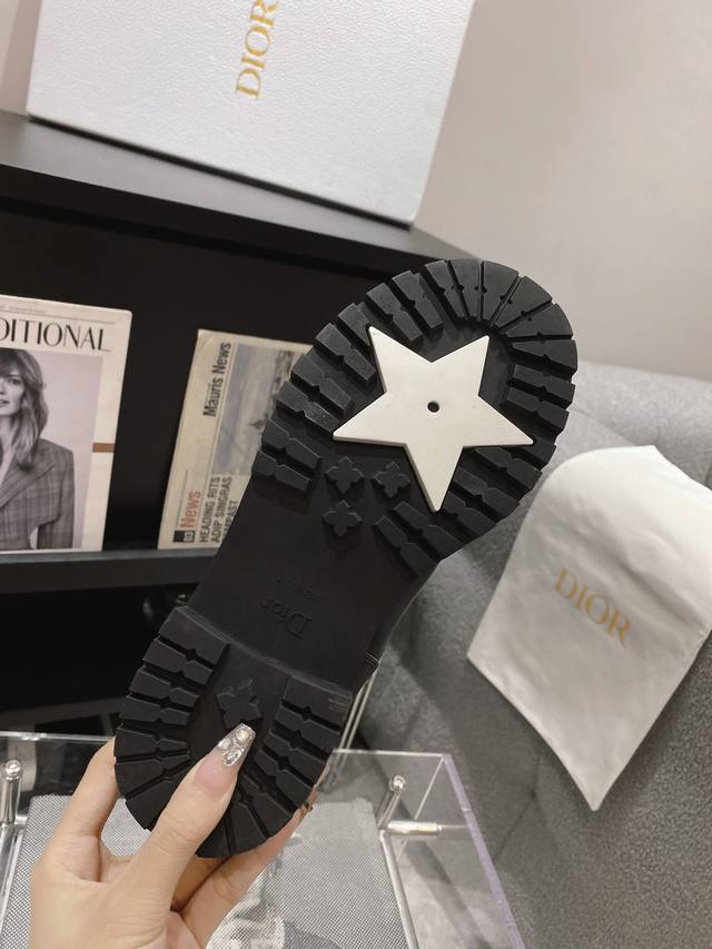 Dior 秀款工装中筒靴 鞋面采用原版牛皮,原版定制靴筒,材质内里垫脚原版进口牛皮原版开模大底,意大利进口原版镶五角星经过多重工序 用无可比拟的精湛工艺制作完成