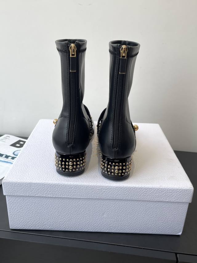 Dior 迪奥 秋冬新款朋克风格铆钉弹力靴 明星同款Cd扣字母Logo五金扣方头低跟短靴 市面顶级版本