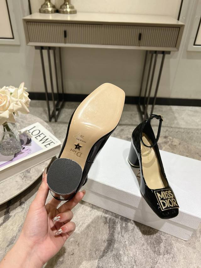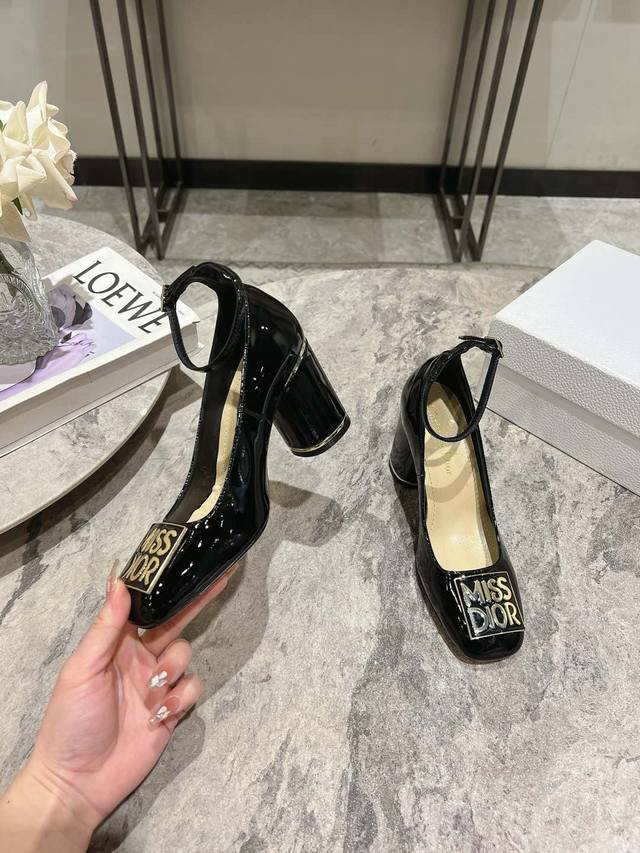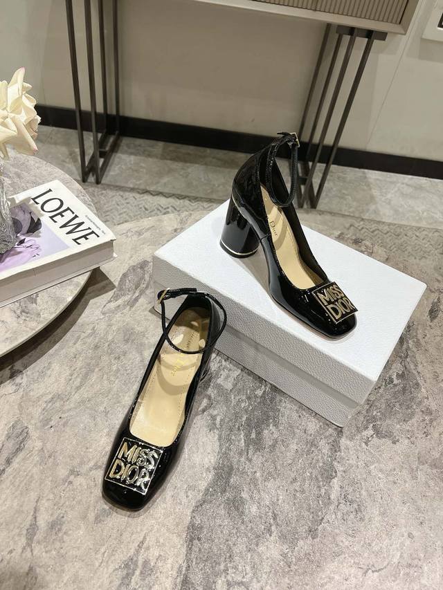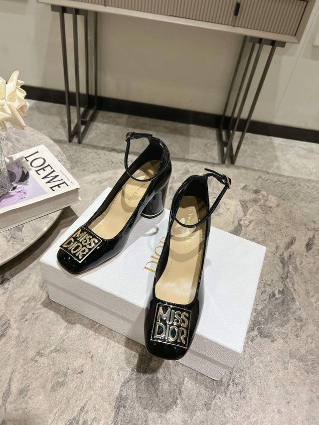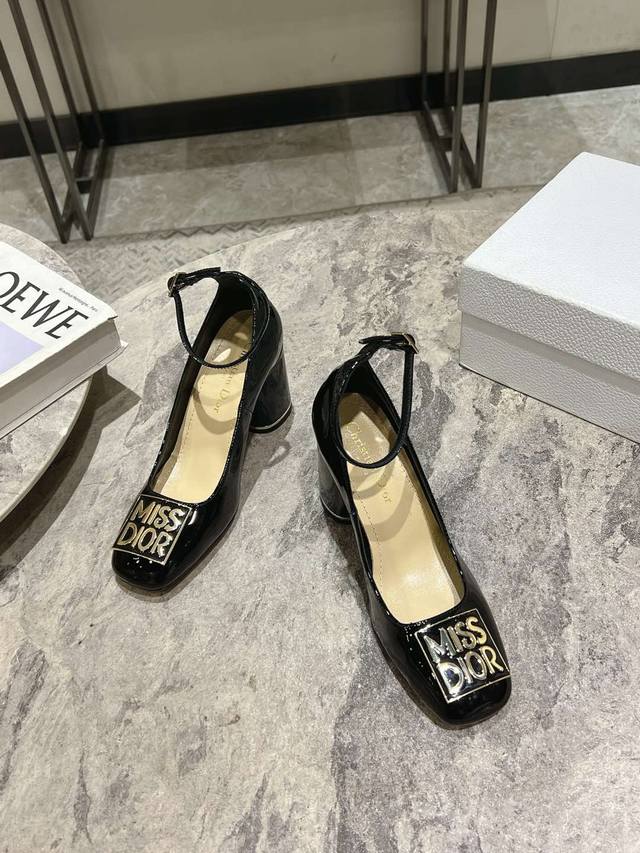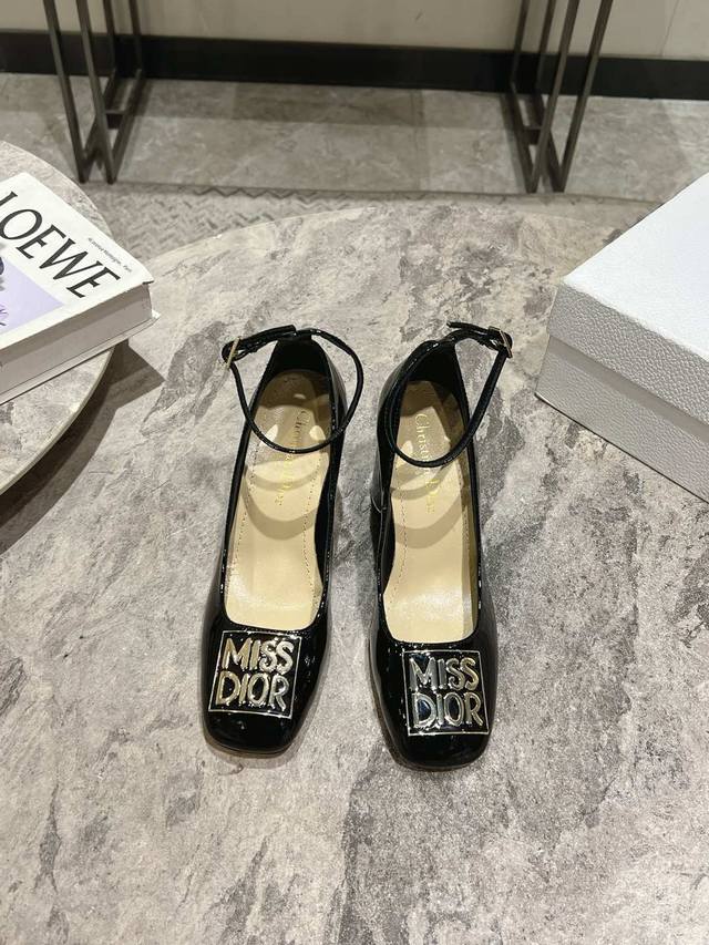 Dio*R 迪奥 2025春夏最新时装秀高定系列 Miss Dior 粗跟方头玛丽珍芭蕾舞女鞋 Cd字母logo五金珐琅方扣低跟一圈带中古女单鞋 原版开发顶级高端版本