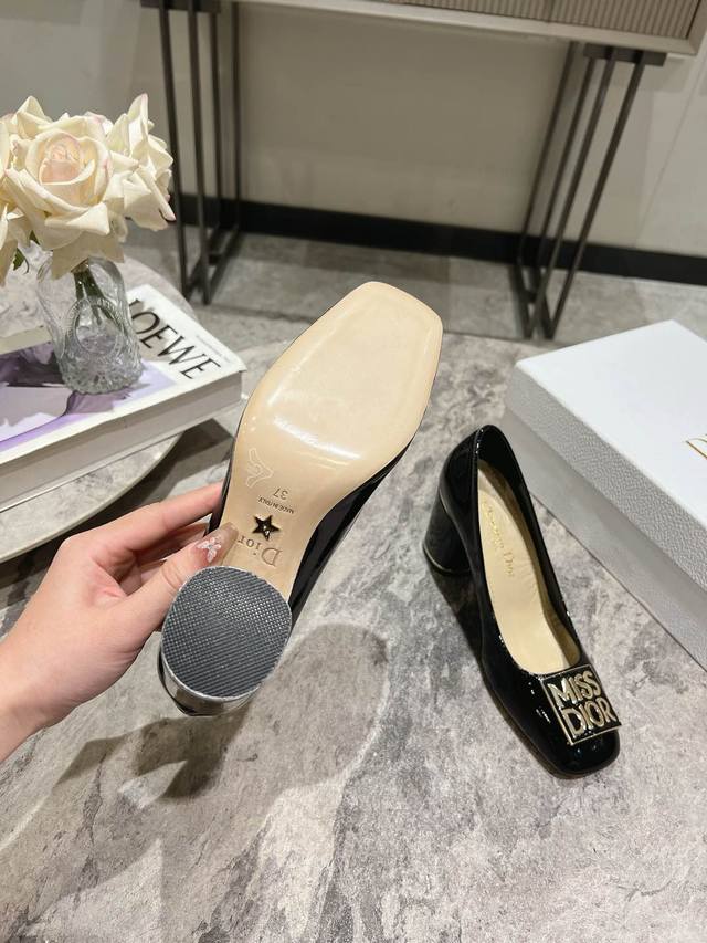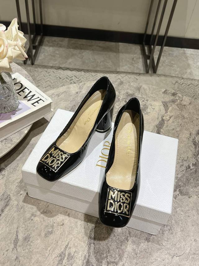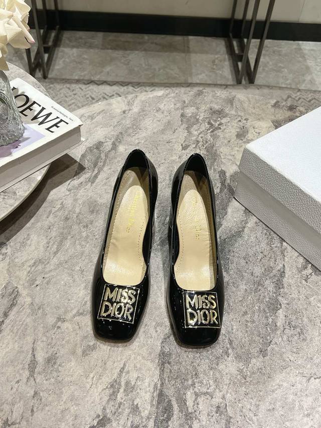 Dio*R 迪奥 2025春夏最新时装秀高定系列 Miss Dior 粗跟方头玛丽珍芭蕾舞女鞋 Cd字母logo五金珐琅方扣低跟一圈带中古女单鞋 原版开发顶级高端版本