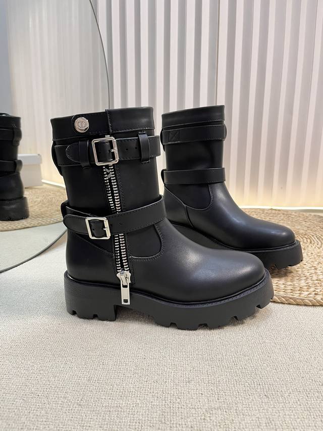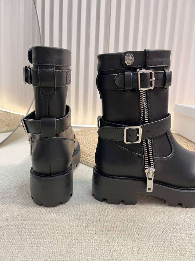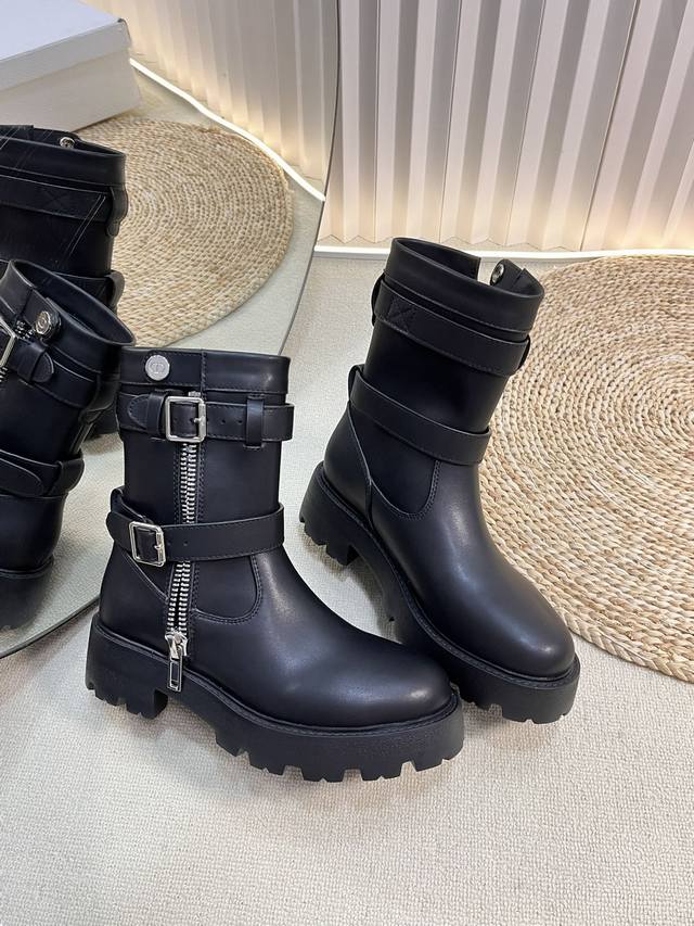 Dior 迪奥25秋冬新款D-Major系列朋克风女靴 明星同款Cd字母Logo五金皮带扣侧拉链机车靴 粗跟厚底圆头一脚蹬骑士短靴