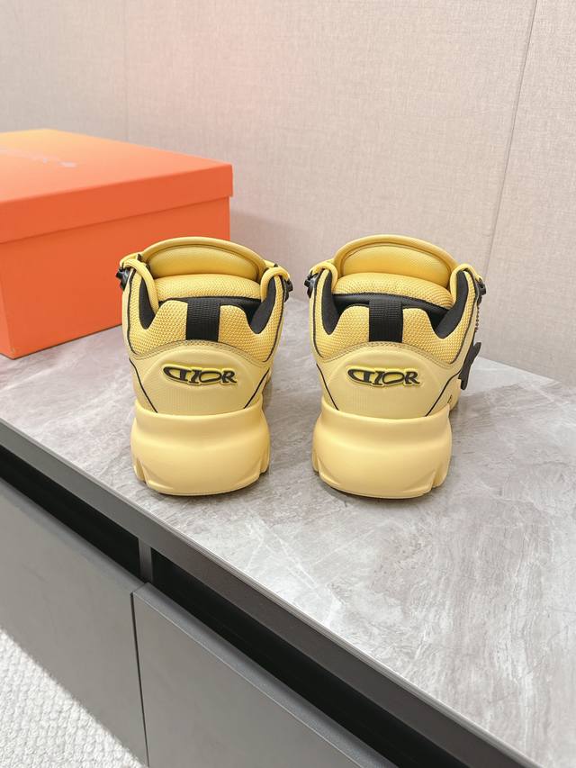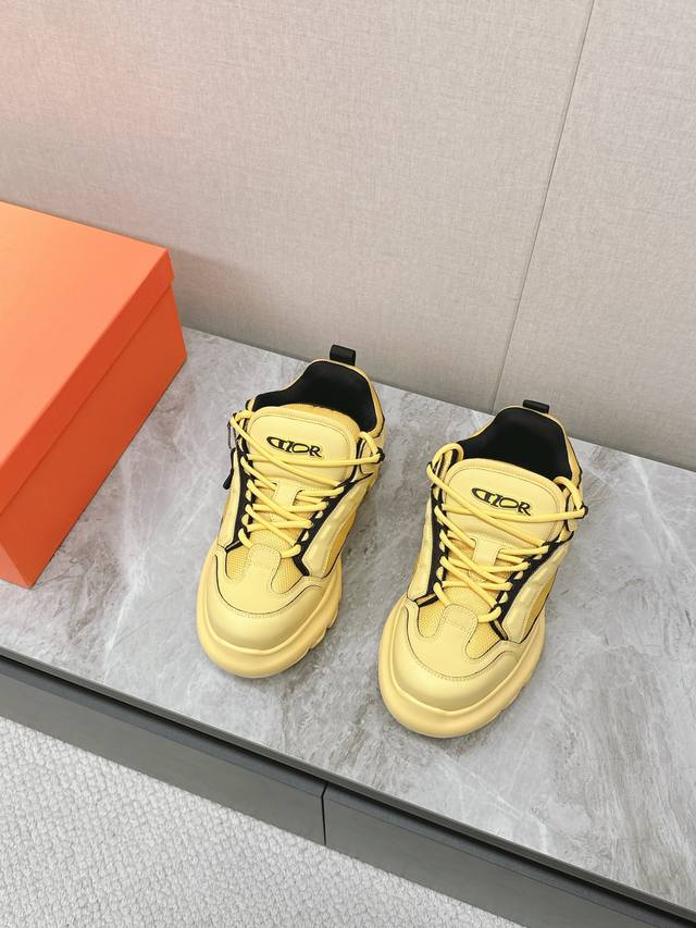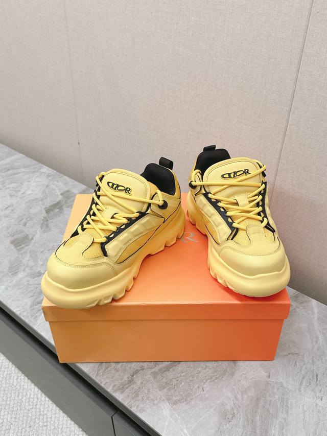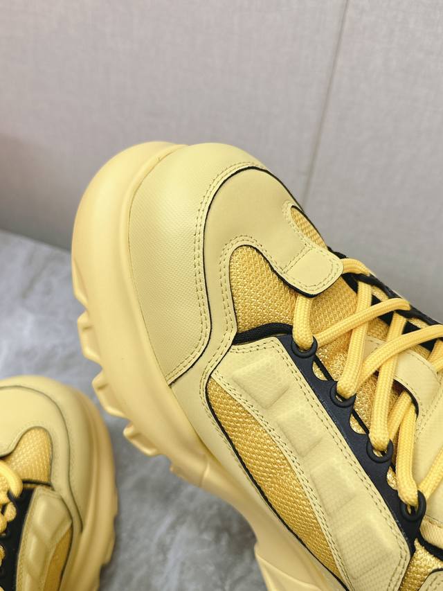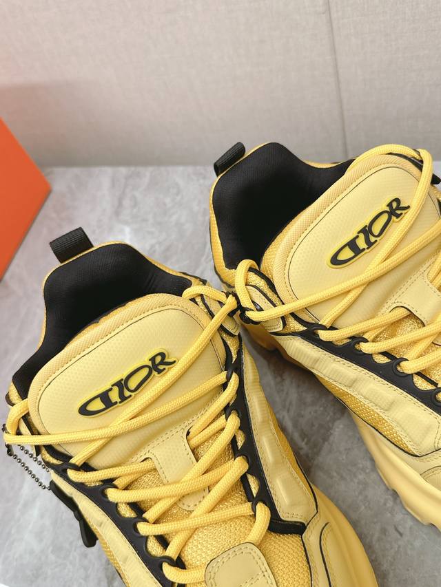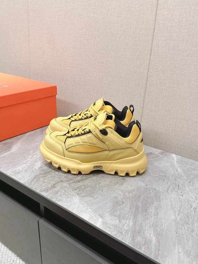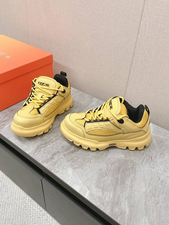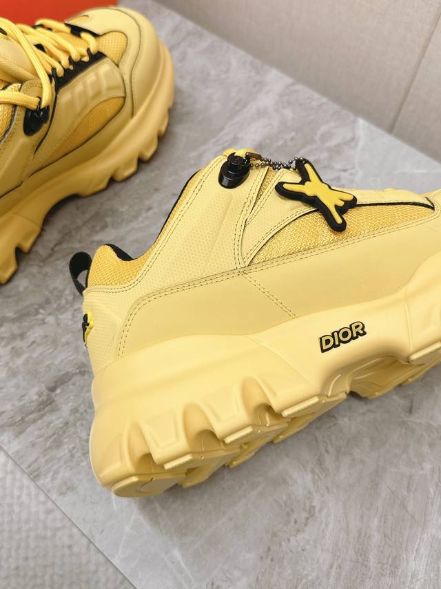 Dior X Lewis Hamilton 科技情侣款登山鞋 这是2025春季新品 Dior Snow 德比鞋是dior与英国赛车手lewis Hamilton 联名胶囊系列中的独家款式 该款鞋展现了dior卓越的工艺技艺,重新演绎登山鞋风格,融合品牌的高级定制元素与强烈的设计感 黄色皮革效果的科技面料和同色系科技网布拼接材质,搭配双加厚鞋舌与后跟上的dior与 Lewishamilton联名标识,鞋带钩上悬挂着联名款独特标识吊饰 加厚鞋领、厚实且富有弹性的锯齿状橡胶鞋底以及加固鞋头设计,为穿着者提供极致
