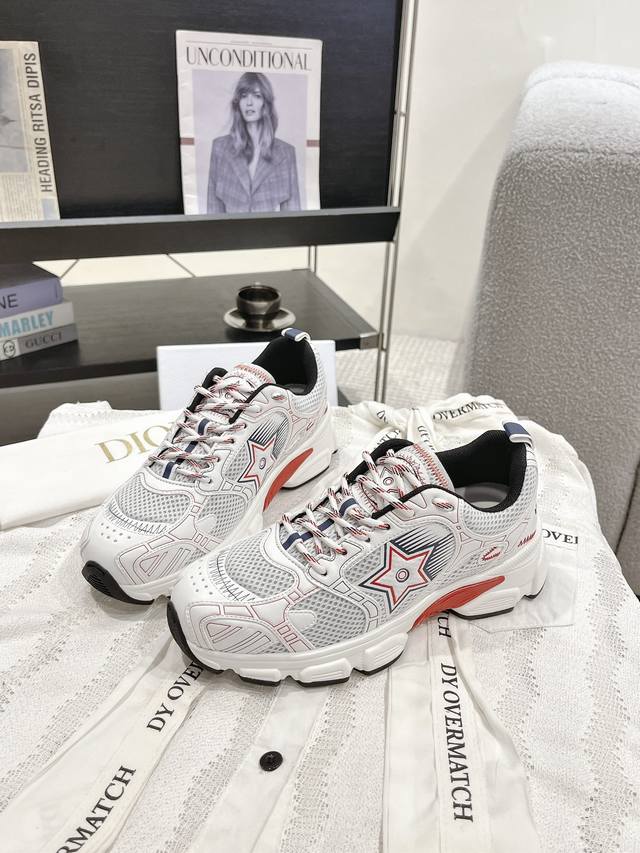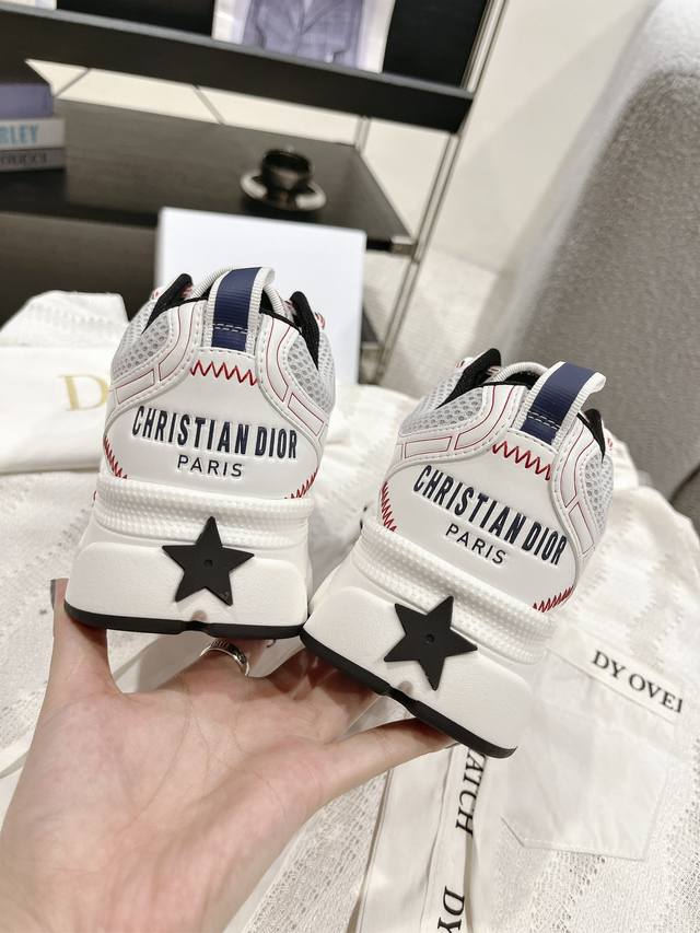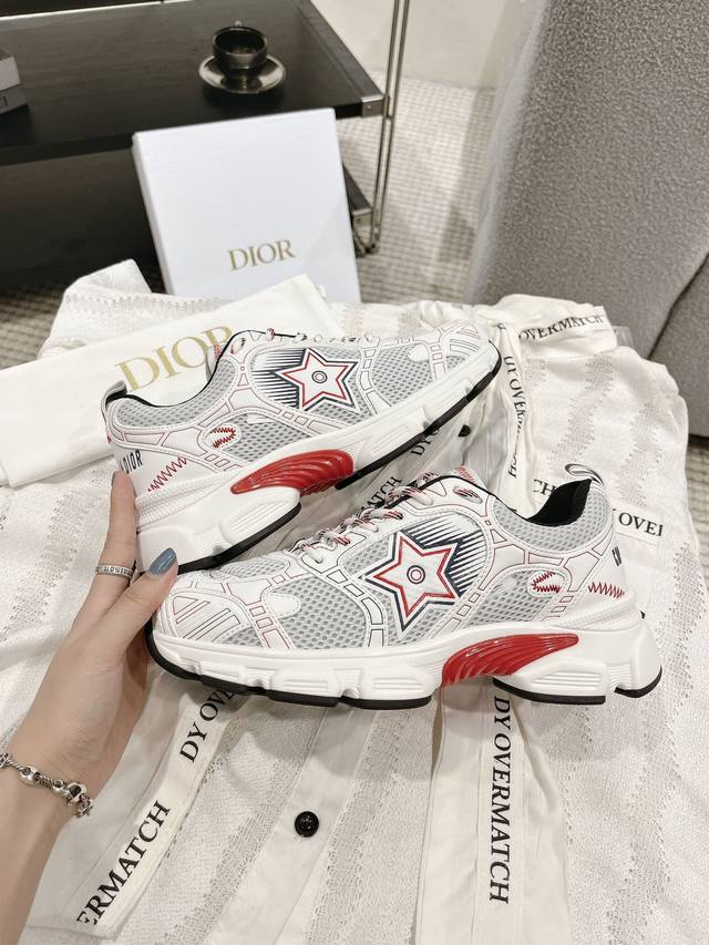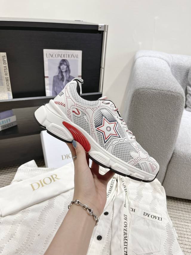 H Or 这款Dior Vibe#迪奥运动鞋融入 Dior 的高订精神,重新诠释经典跑鞋。搭配深蓝色 Oblique 印花科技面料、网眼织物和透明橡胶镶片,打造对比鲜明的现代风格。以 3D 效果细节、后侧星星装饰、鞋舌和后侧提拉环上的标志等标志性细节进一步点缀。透明胶质外底更加时尚,与各式休闲或优雅单品相得益彰,打造摩登造型。