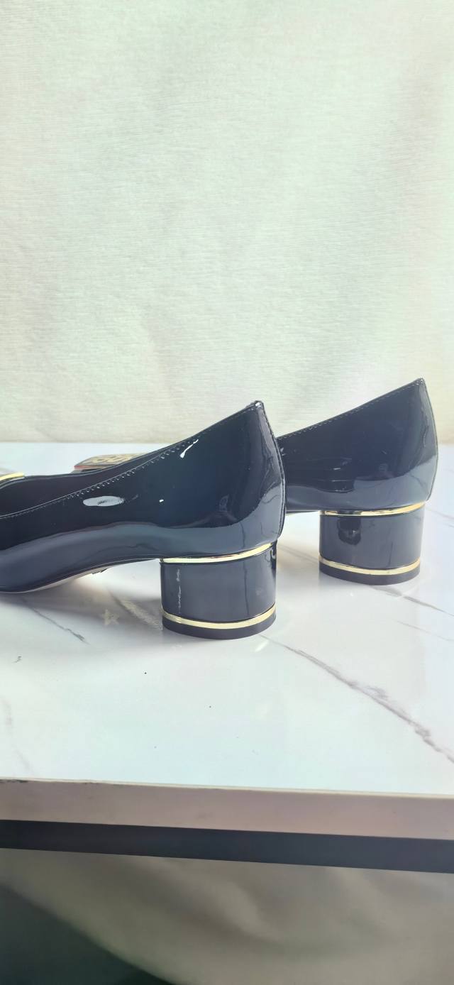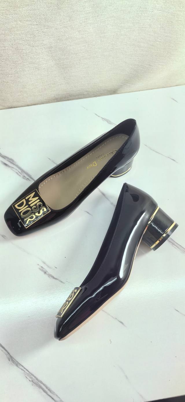 这款miss单鞋系列巴黎走秀爆款,优雅时尚 采用漆皮皮革精心制作,款式简约,鞋面饰以金色饰面金属logo提升格调,优雅大气!时尚的圆形鞋头与圆柱形鞋跟相得益彰,可为各式造型增添高雅气质