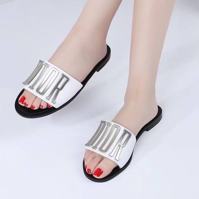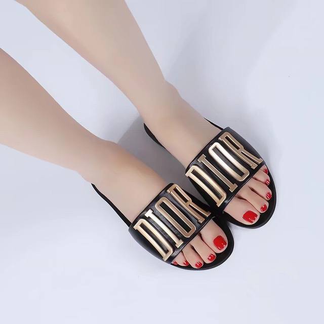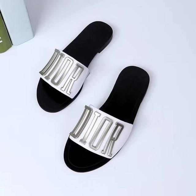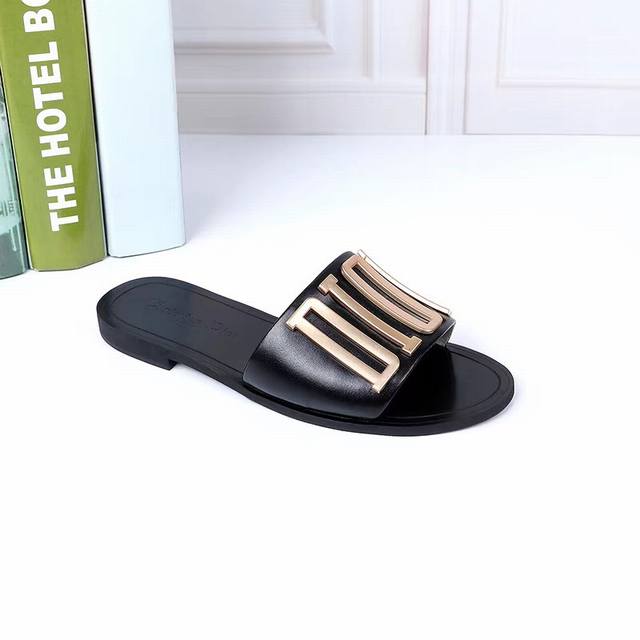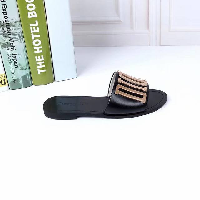 p160$顶级版本[强][强] Dior 18 'ss 迪奥 新款走秀爆款字母金属Logo懒人拖鞋,众多网红上脚,代购级别,上脚时尚舒服,适合任何服饰搭配,萌妹子的必备拖鞋,原版扣饰 颜色:黑色,白色,面料:进口小牛皮,内里羊皮,意大利双层真皮大底(定做) 码:35-44码,41-44定做长期有货[嘴唇]