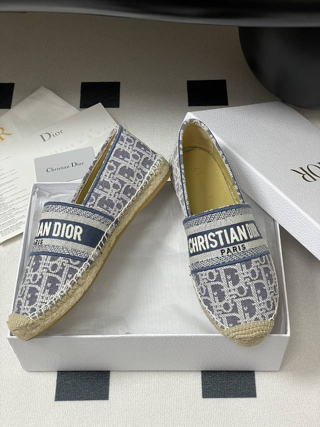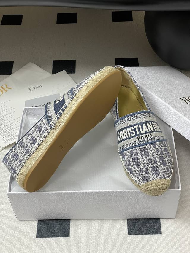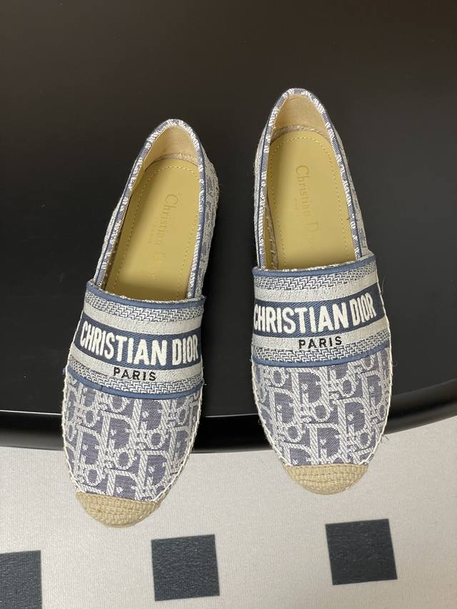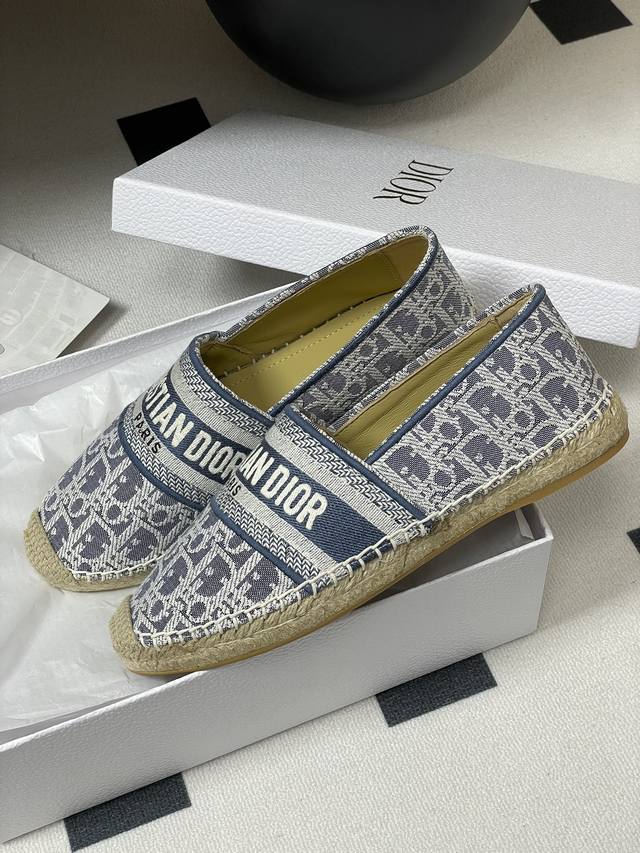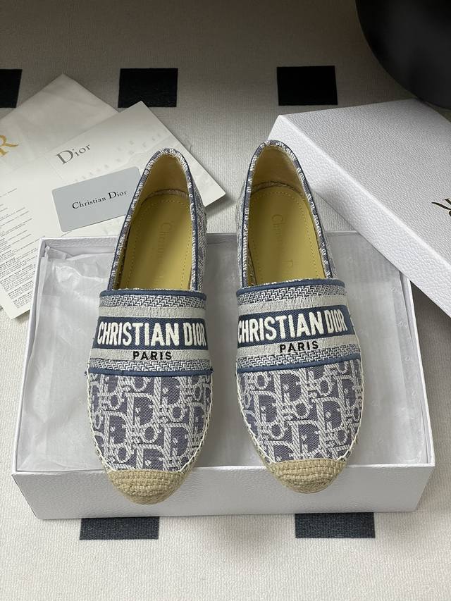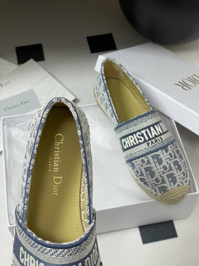 2025迪奥Dior早春最新牛仔配色 Granville 草编鞋刺绣渔夫鞋