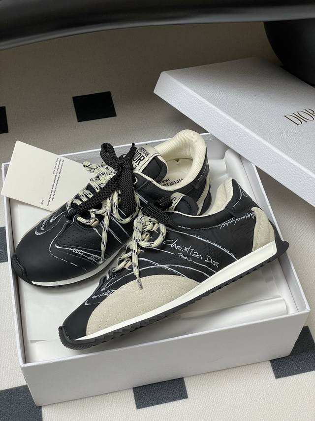 25Ss早春新款Dior 迪奥D-Sketch涂鸦素描运动鞋 休闲德训鞋 阿甘鞋
