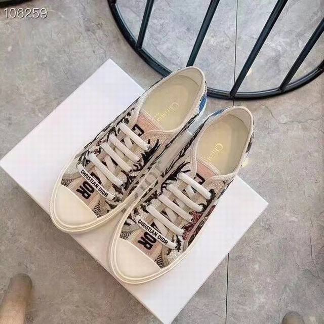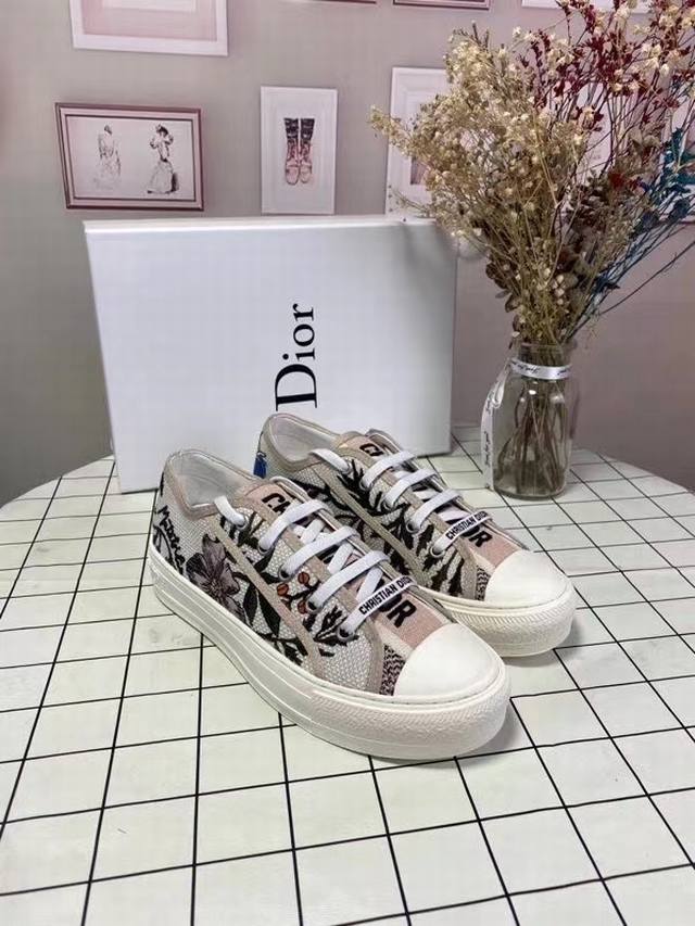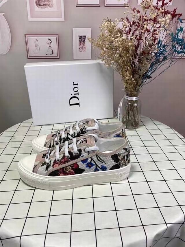 Dior采用牛皮拼接电绣工艺,品牌凹凸均衡,高档大气,透气网布内里,楦头正,耐磨橡胶大底穿着舒适,轻便,值得购买,码数...