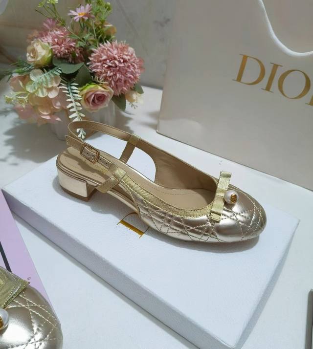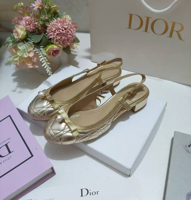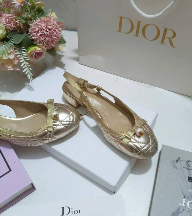迪奥24Fw新品珍珠蝴蝶结芭蕾舞鞋