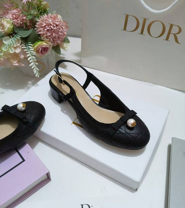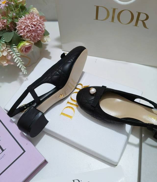 迪奥24Fw新品珍珠蝴蝶结芭蕾舞鞋