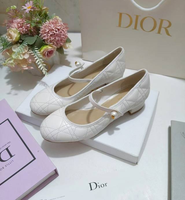 迪奥24Fw新品珍珠蝴蝶结芭蕾舞鞋