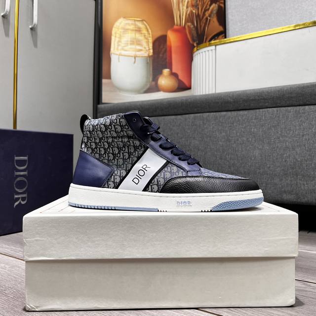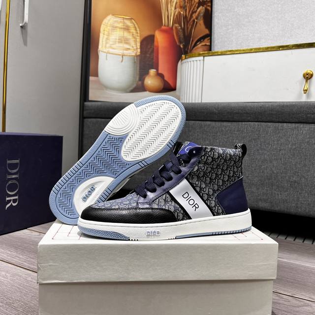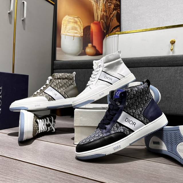 出厂价 迪奥新款休闲高帮鞋 时尚大方百搭, 版型简洁大气, 面料采用进口牛皮配布,羊皮内里,原版耐磨橡胶大底,独家新款,实物拍摄,三色可选,码数:38-44, 45可定做