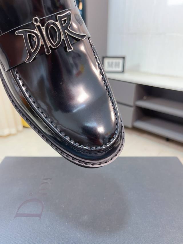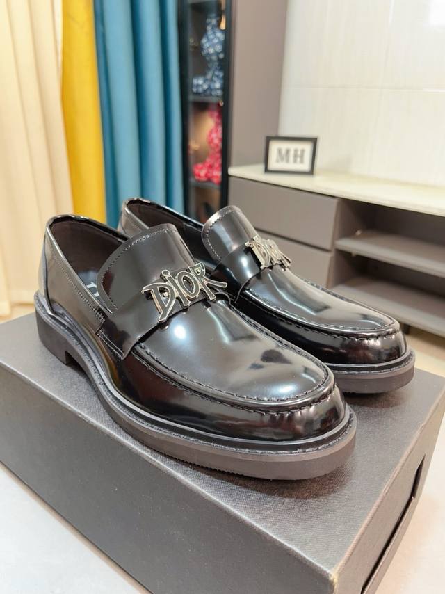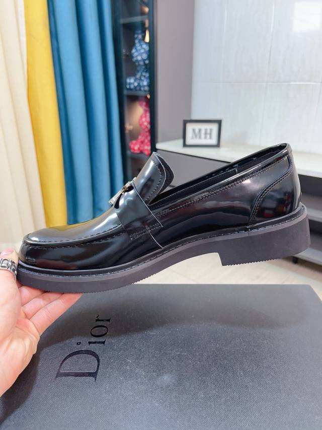 出厂价 高端 Dior 迪奥正装休闲皮鞋 鞋面进口开边珠 黑色水染牛皮内里 吸汗防臭 意大利原版真皮大底 做工细节无可挑剔 简约经典时尚百搭 黑色 酒红色38-44现货45可定做
