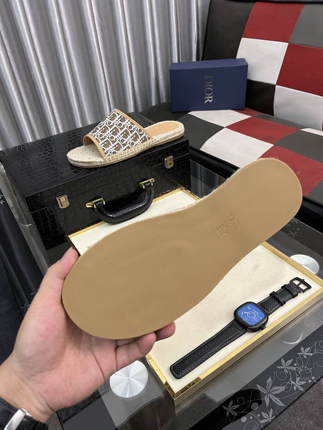出厂价Pp: Dior 迪奥拖鞋 新款拖鞋同步发售。意大利进口原单材料。全进口羊皮内里,鞋底:原厂特供原版底,独家活动成型底超级舒适,原厂跟单货,高品质,可随意进出专柜,码数:38-442色可选