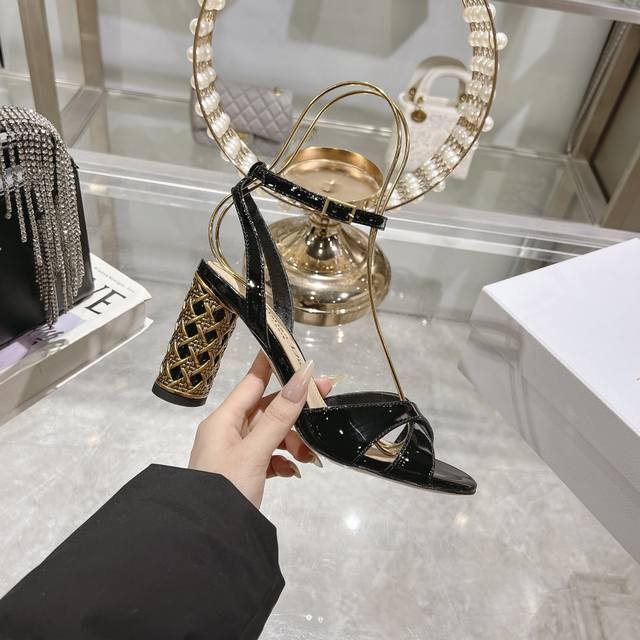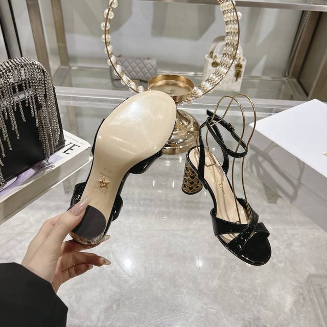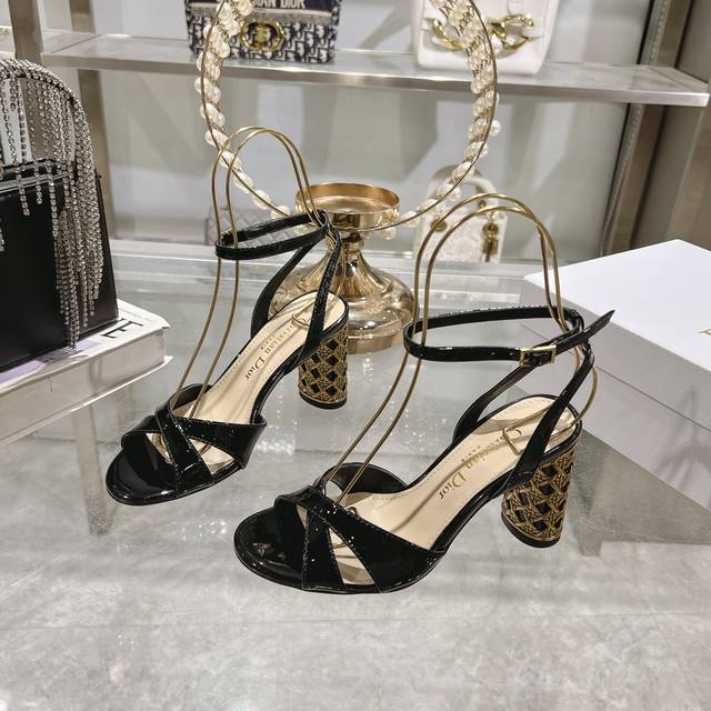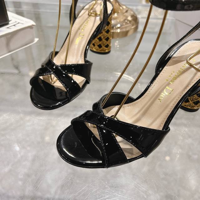 Dior 迪奥2025春秋系列明星同款字母logo圆柱粗跟凉鞋设计交叉一字带凉鞋 上脚效果特别好看 若隐若现 很有特色 款式新颖