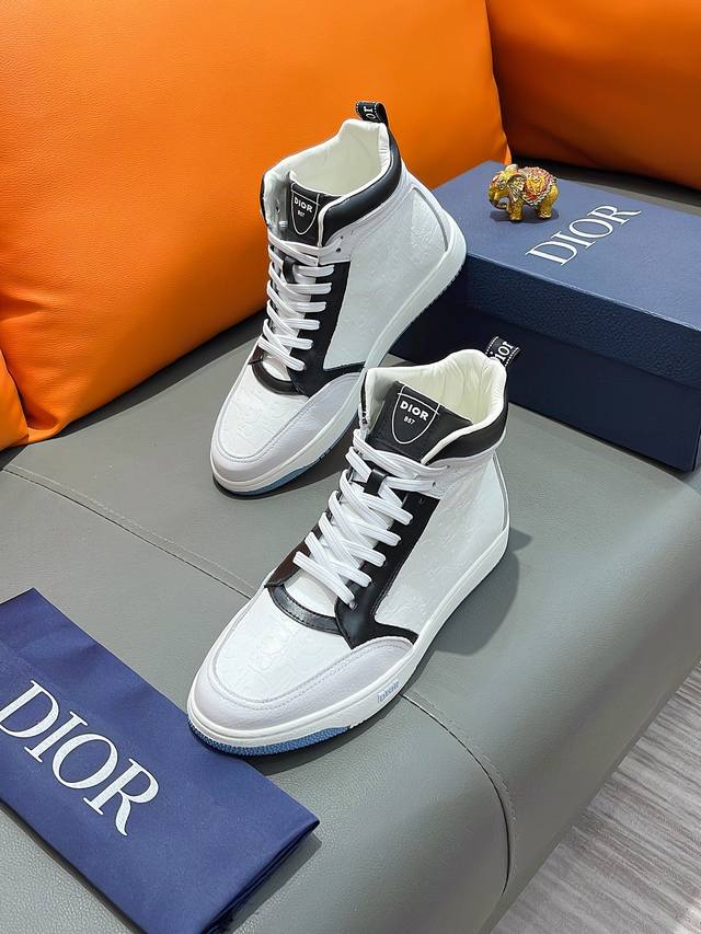 商品名称:DIOR 迪奥 正规码数: 38-44 高帮鞋 商品材料:精选 牛皮鞋面,柔软羊皮内里;原厂大底。