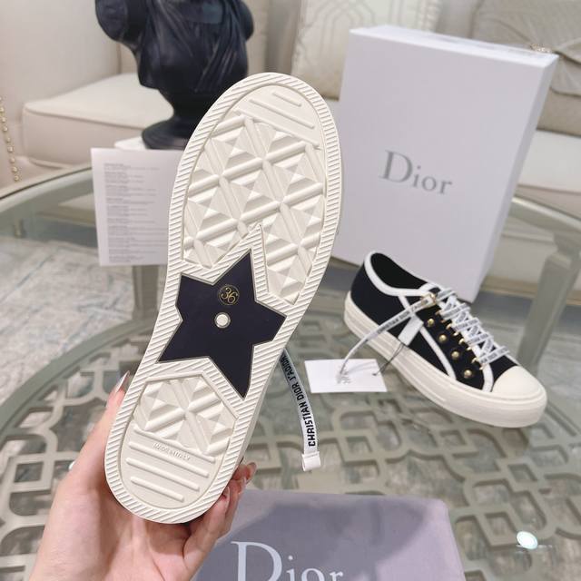/ 女 元 Dior 迪奥 春夏新款 帆布花园鞋,原版复制,专柜包装,最高版本! 面料:纯棉帆布 垫脚:牛皮 内里:牛皮 大底:原版五角星大底 颜色:黑色 码数:女
