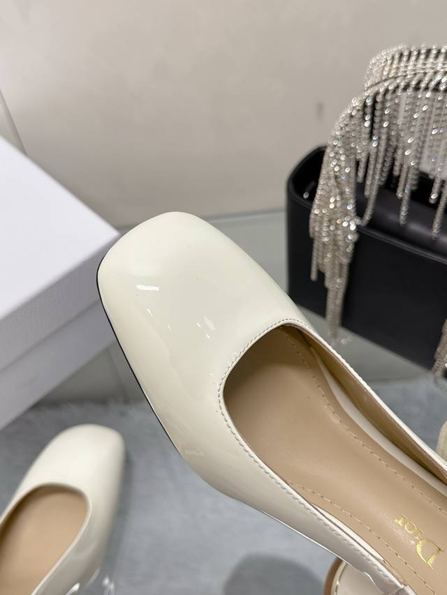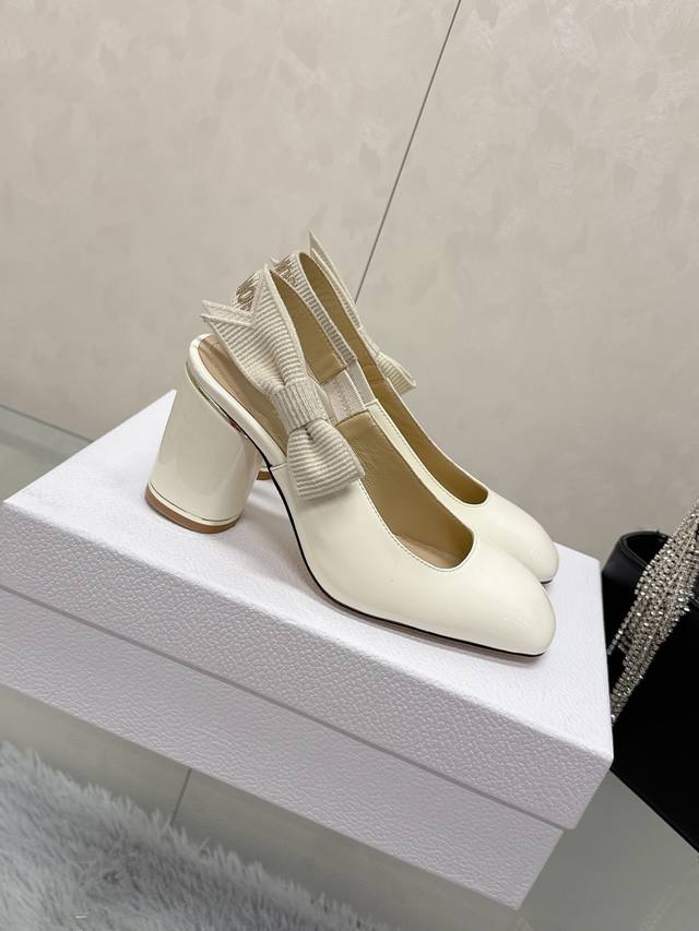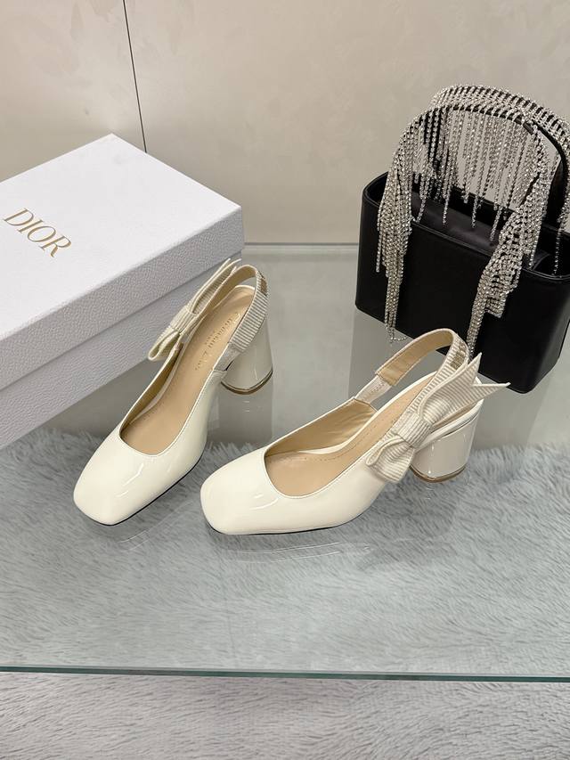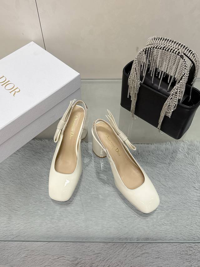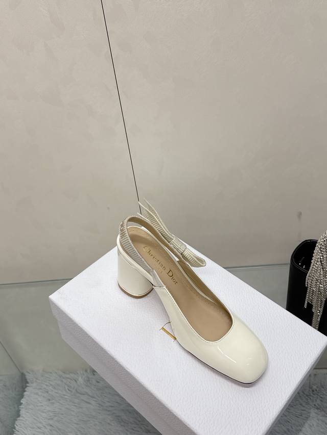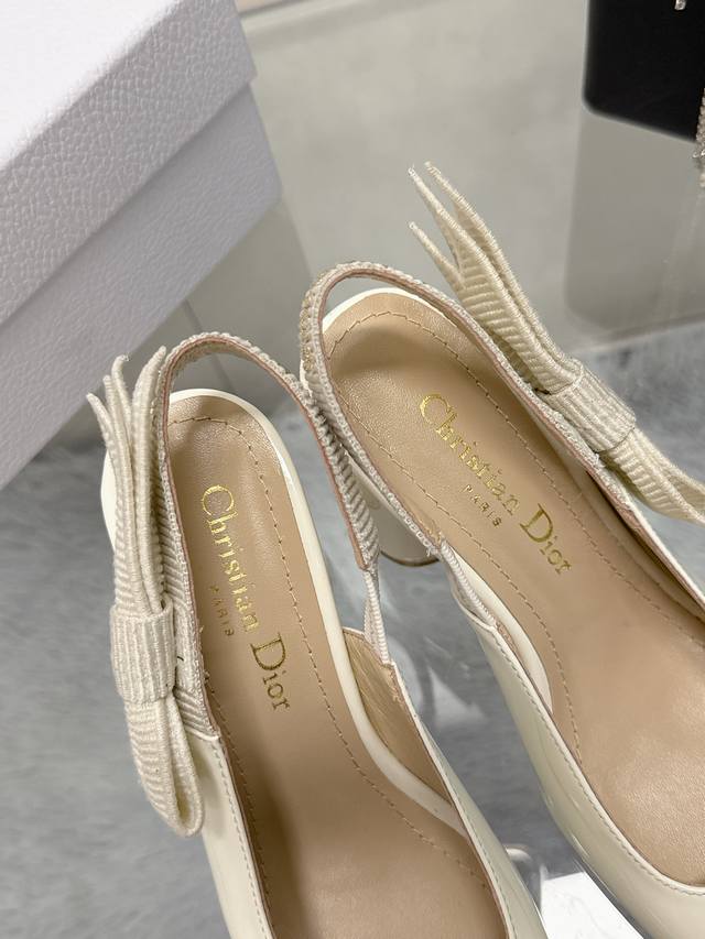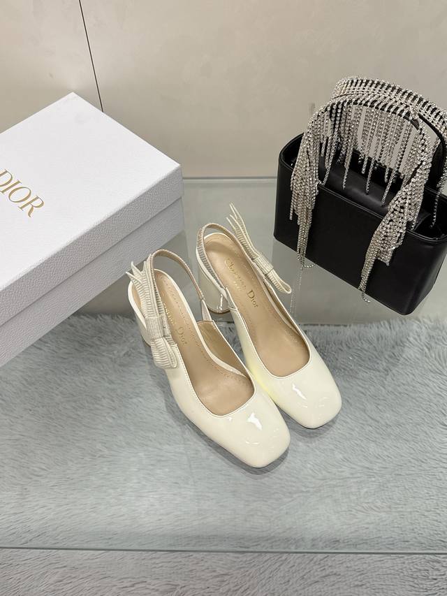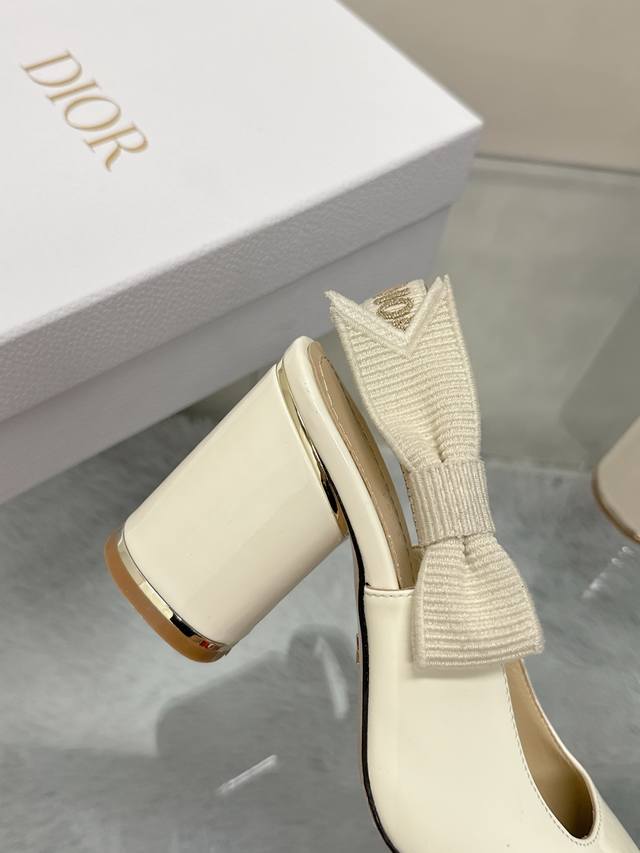 DIO*D迪奥家2025ss春夏新款法式真皮镂空蝴蝶结一字扣带包头凉鞋 方头百搭走秀细高跟鞋