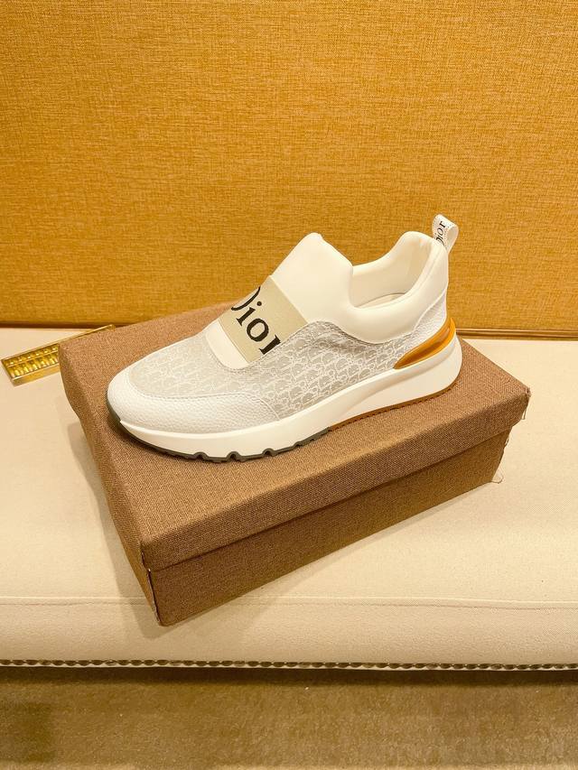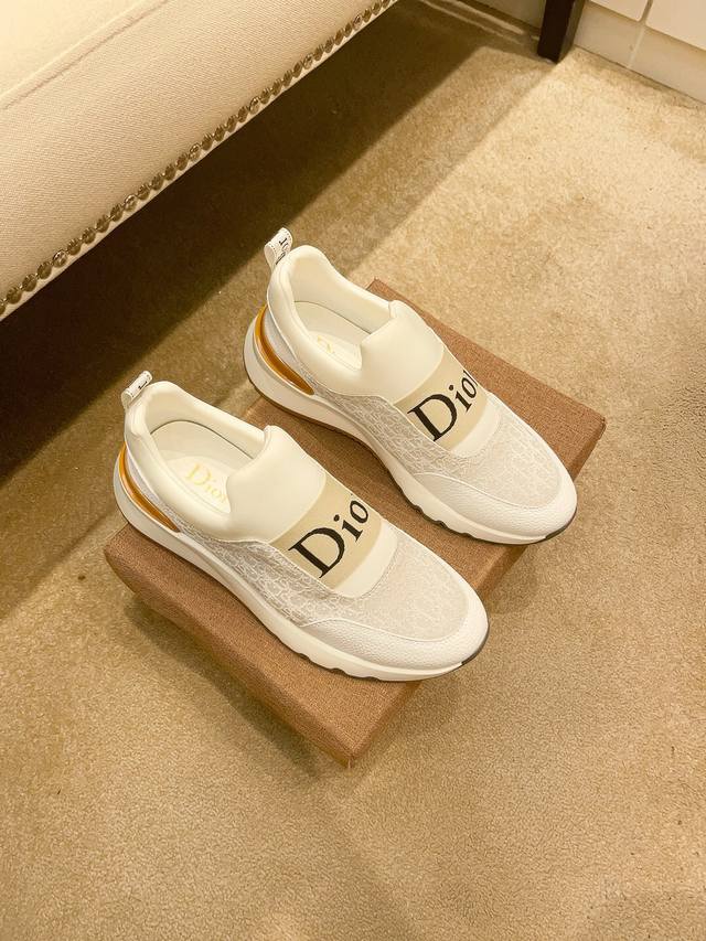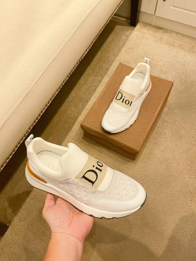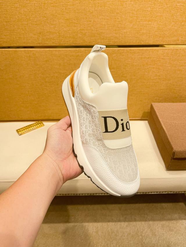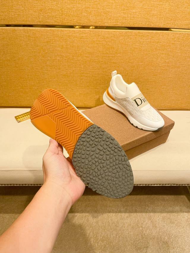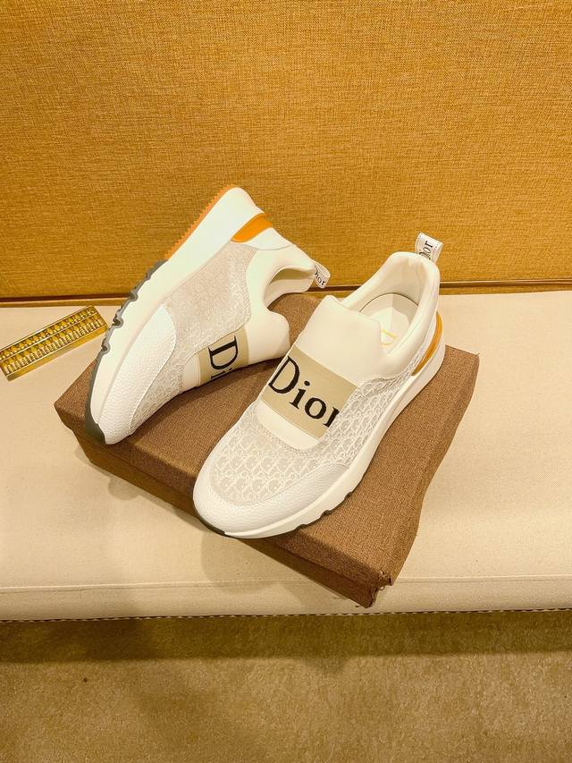 Dior采用牛皮拼接电绣工艺,品牌凹凸均衡,高档大气,透气网布内里,楦头正,耐磨橡胶大底穿着舒适,轻便,值得购买,码数...