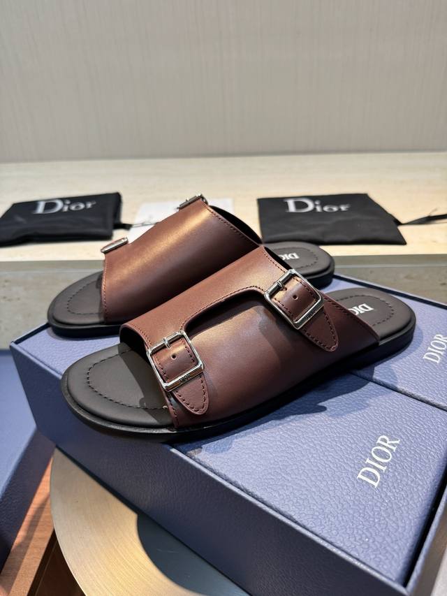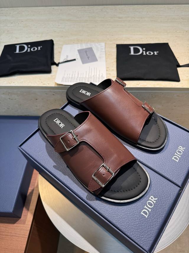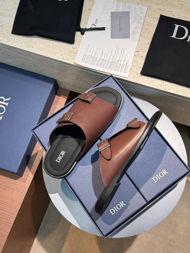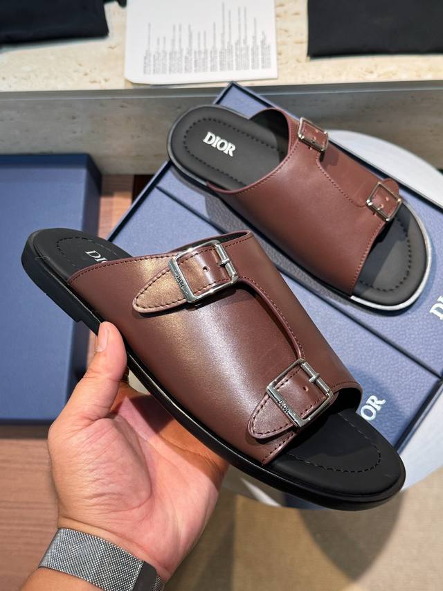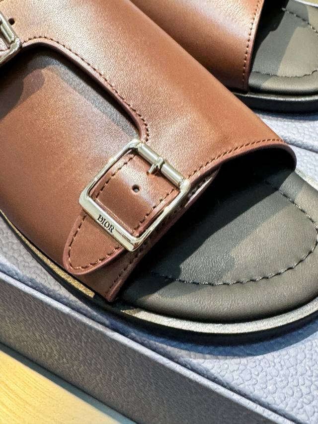工厂P价 迪奥 Dior Alias男士牛皮拖鞋 这款 Alias 凉鞋夏季新品,彰显休闲高雅的风范。采用粒面牛皮革、Oblique印花面料精心制作,牛皮内里!