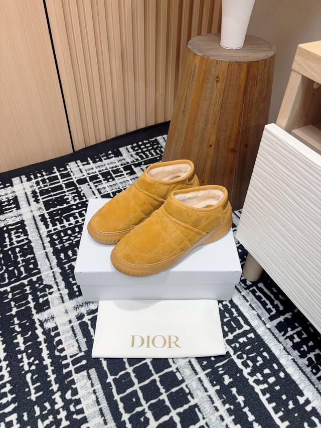 Dior Frost 及踝靴藤格纹羊皮毛一体短靴毛毛鞋