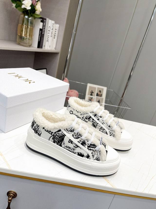 秋季walk ‘N’Dior厚底刺绣运动鞋,采用棉质面料,饰以多色刺绣工艺更显精致,搭配舒适白色橡胶底,鞋舌和鞋带采用christian Dior标志装饰。 羊毛内里,牛皮垫脚。 35-40 34 41可订做
