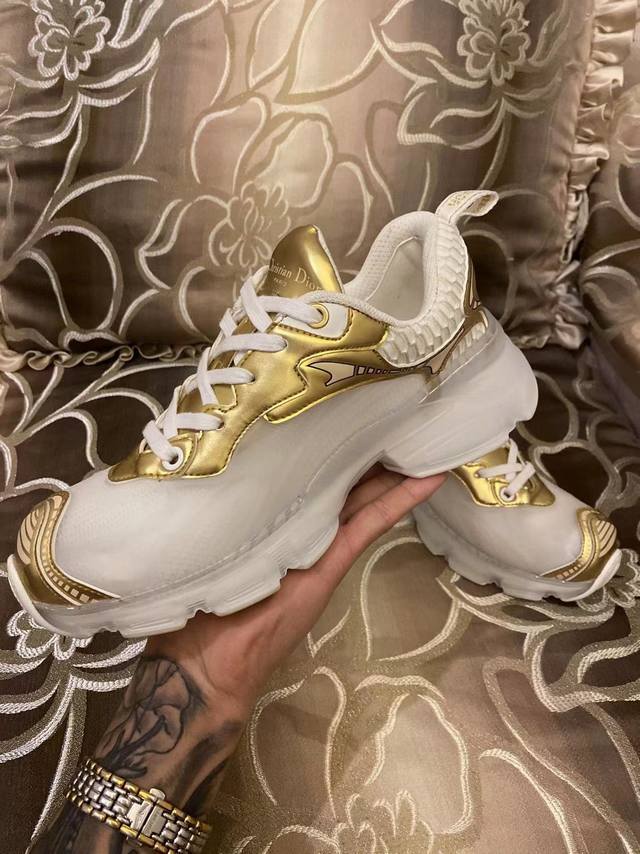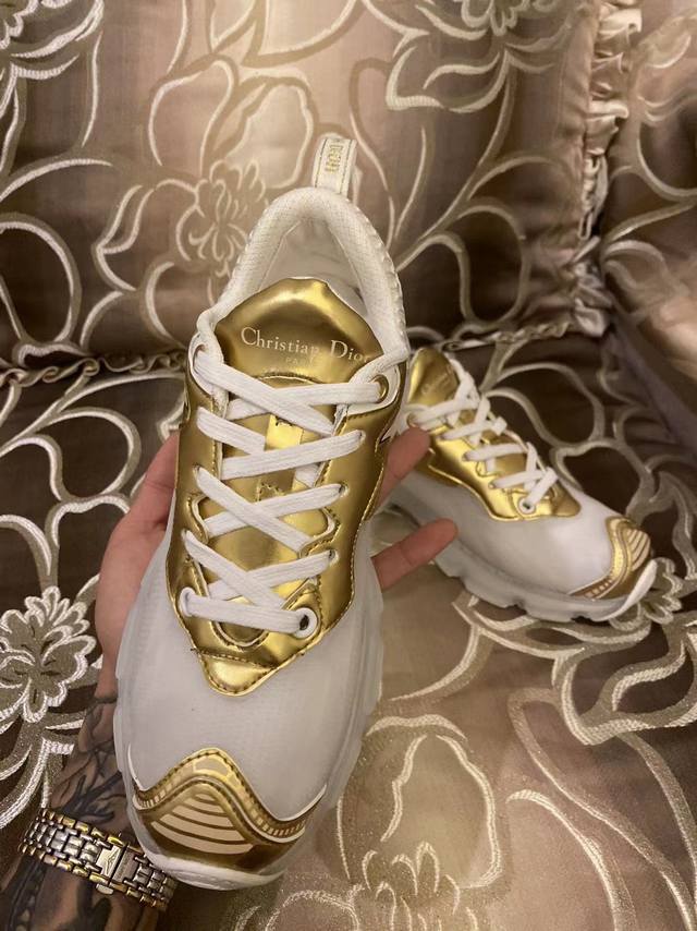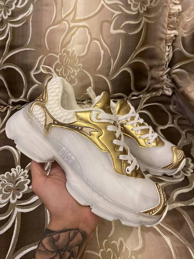 2052 Dior 最新走秀款b31情侣运动鞋,官网同步上新,迪奥独特胶片设计,原版购入复刻1:1开发,潮款必备时尚百搭彰显独特风格,面料:硅胶,特殊金属材料,大底,Tpu透明大底,码数35-40定做41,2色可选,金色,银色男款38-44开发中