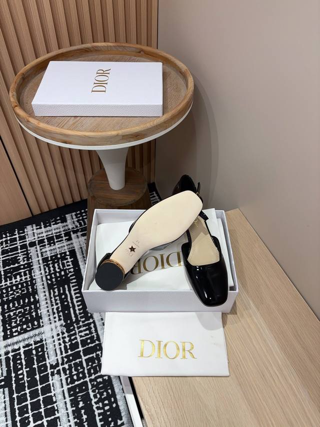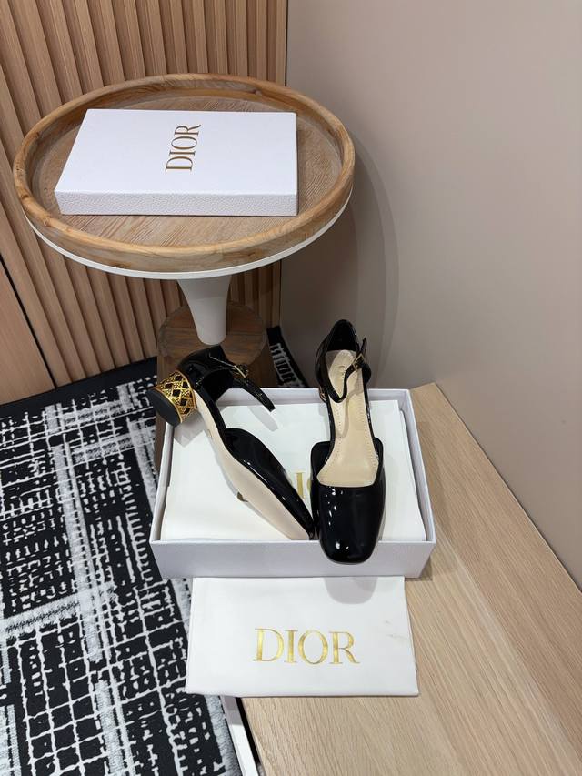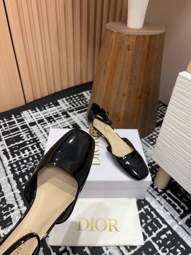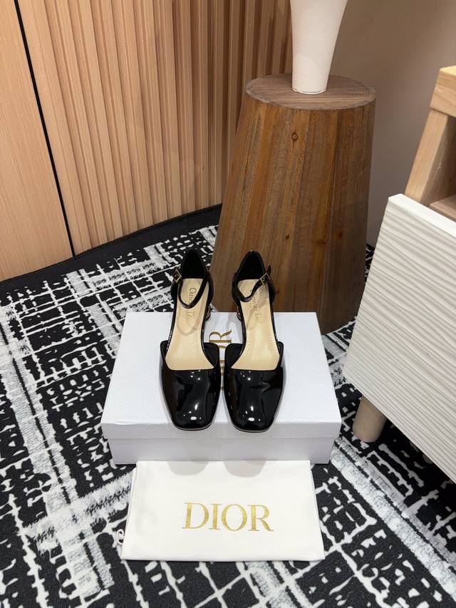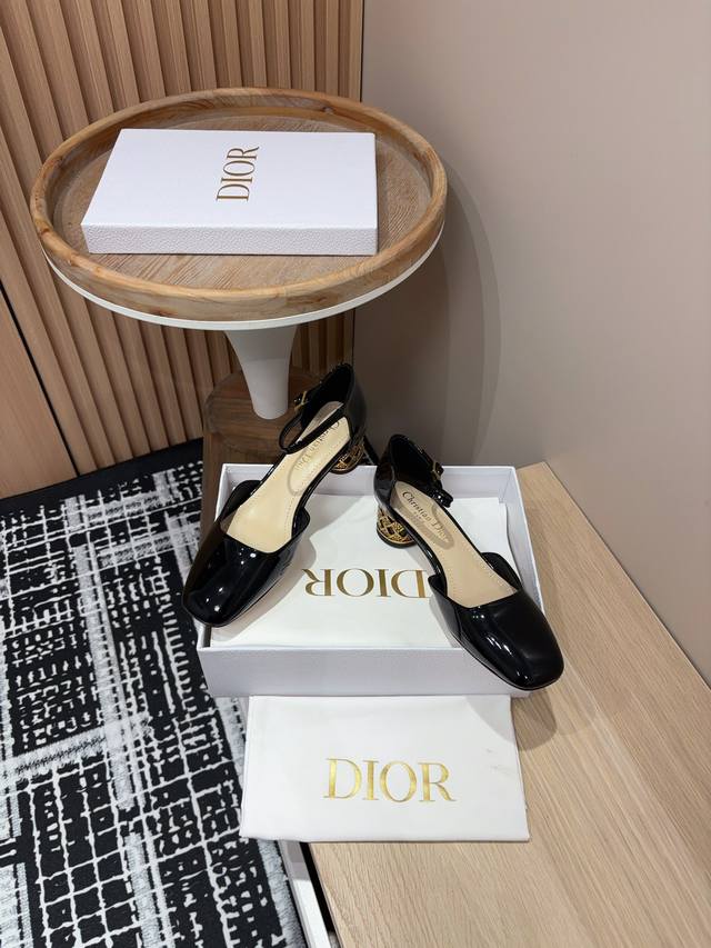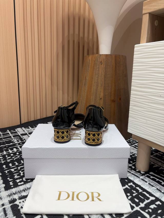 24Ss新款Dior Icon圆铁跟粗跟中空方头凉鞋