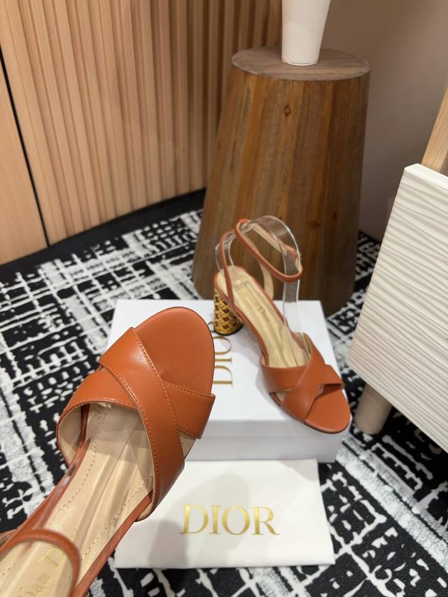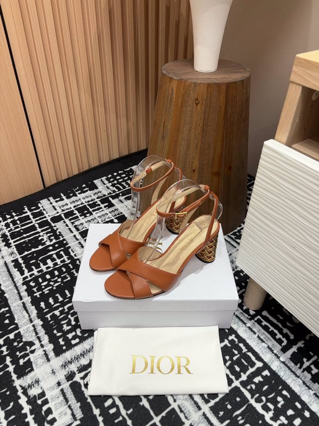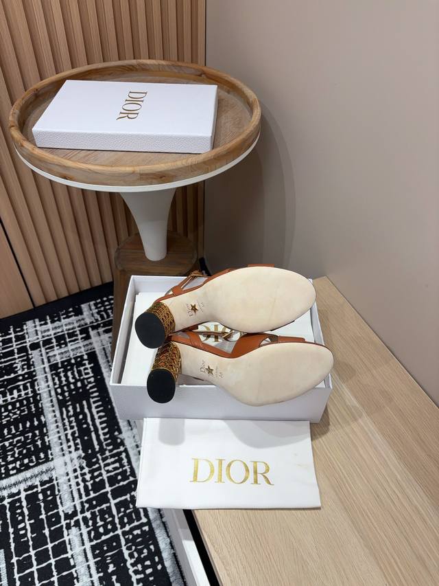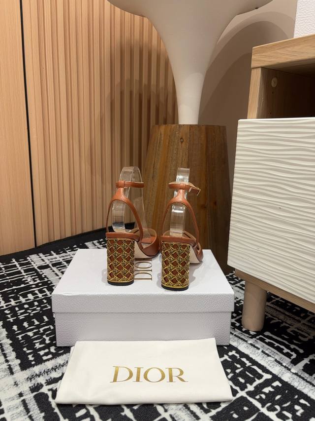 24Ss新款Dior Icon圆铁跟粗跟凉鞋