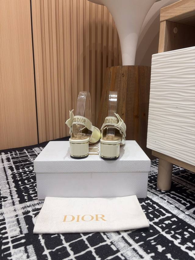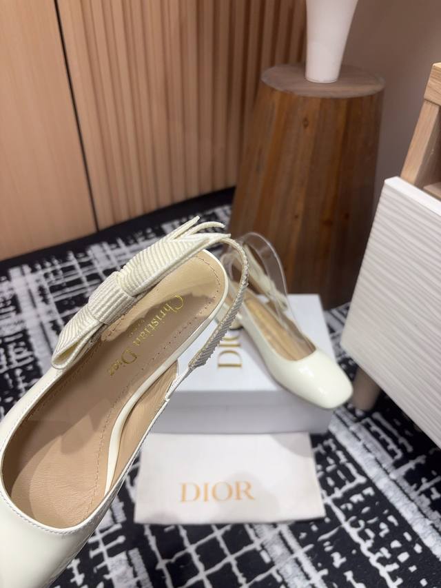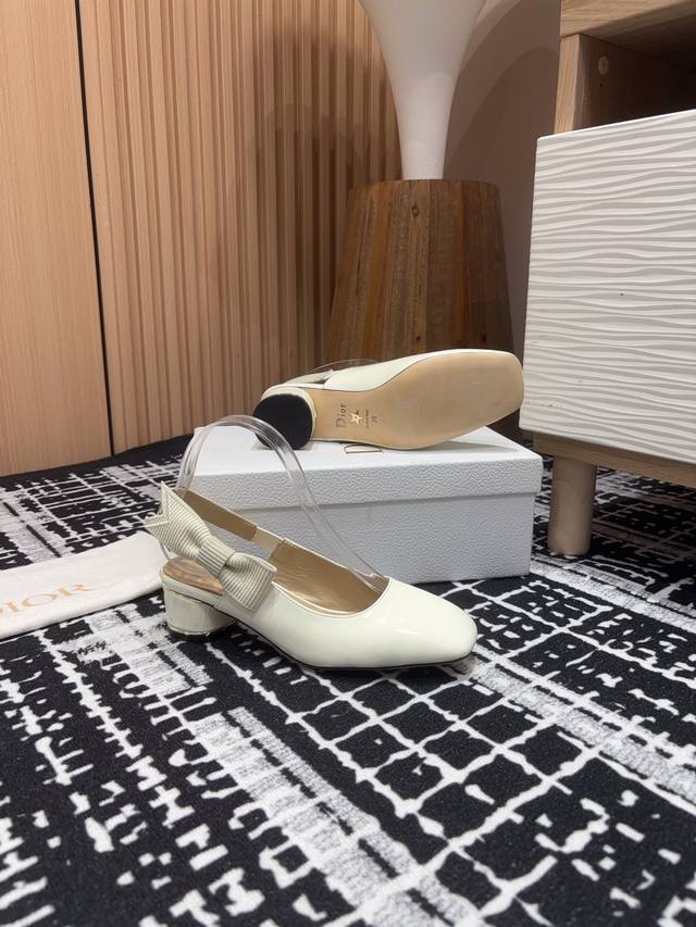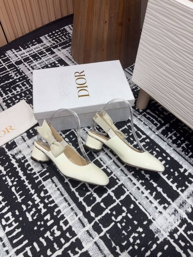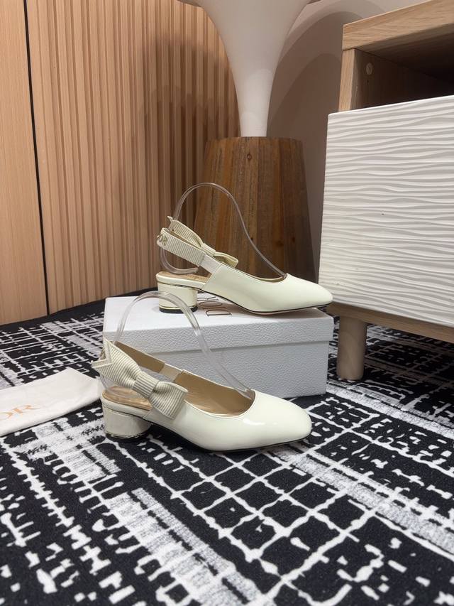 25Ss春夏新款dior 迪奥miss Dior Paris 露跟高跟鞋织带蝴蝶结后空凉鞋