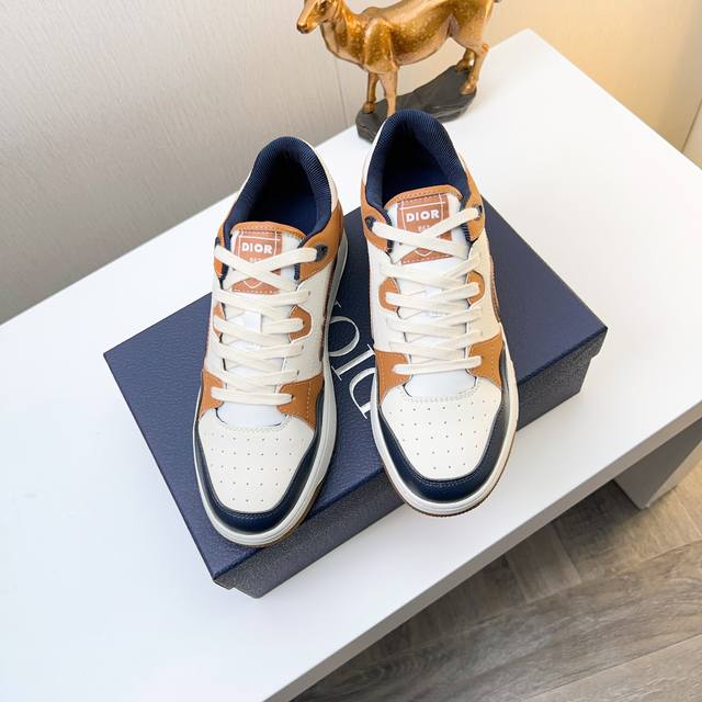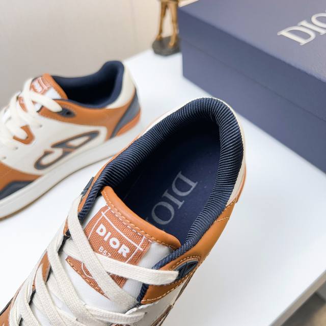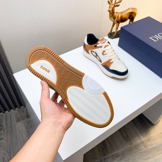 B57低帮运动鞋2025春季男装系列新品上市 ,重新诠释篮球鞋设计,成为Dior的经典单品 ,采用黑色和奶油白色光滑牛皮精心制作,搭配米色绒面革,侧面展示皮革Cd标志,鞋舌、鞋底和后侧饰以各种特色细节提升格调 ,而孔眼细节、缉面线和橡胶镶片更是突显其运劲风格的动感魅力 ,带有双色橡胶鞋底,可搭配各色服饰,打造精致造型,码数:38一45