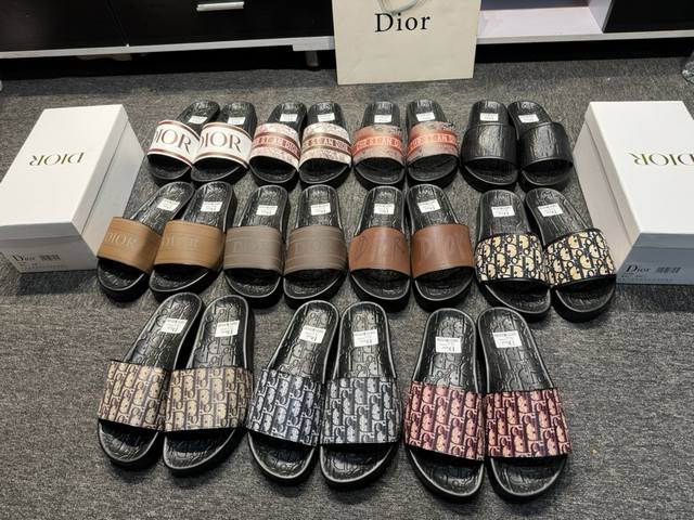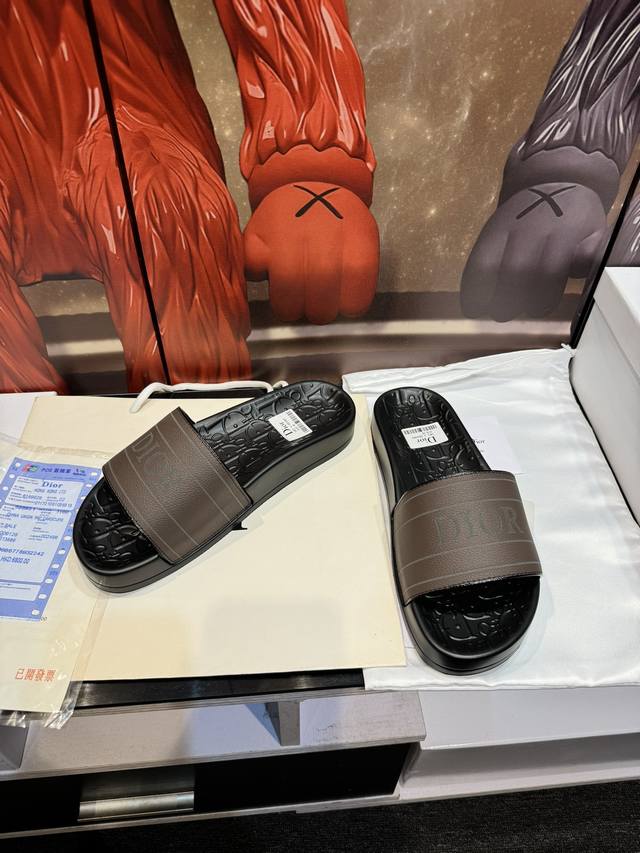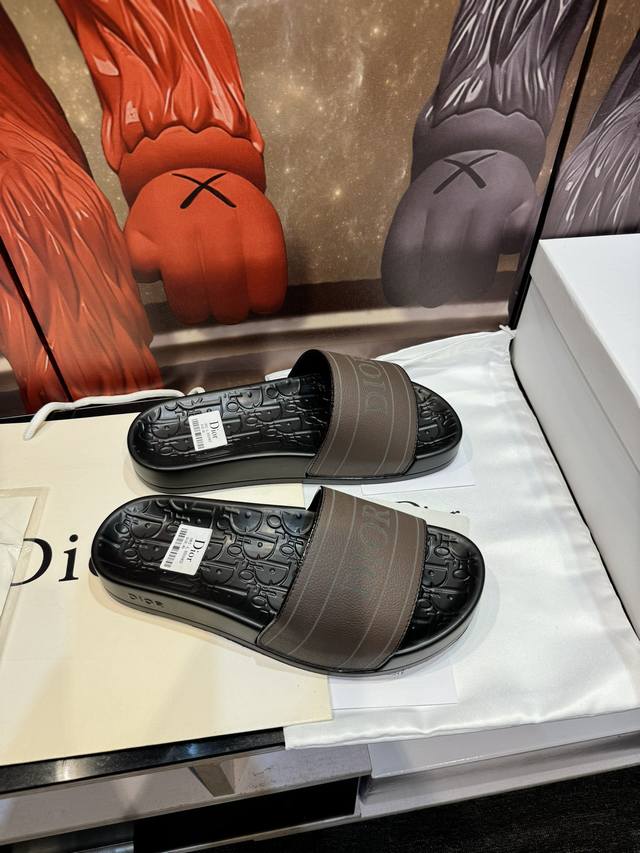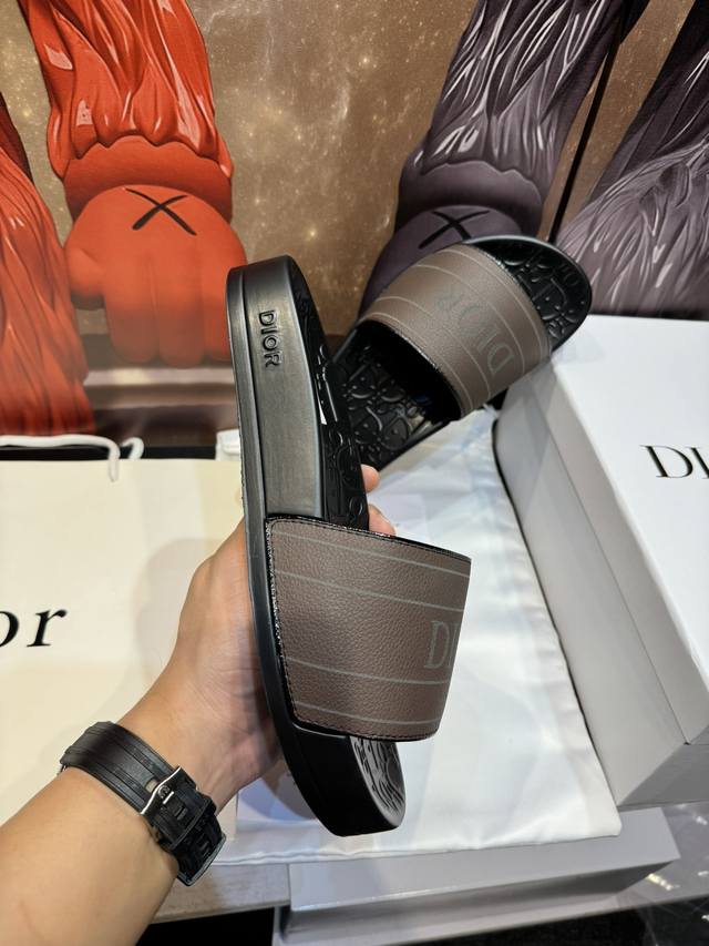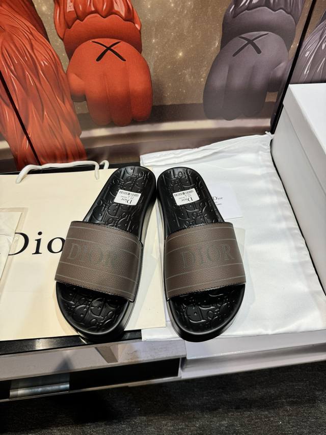 Cd家迪奥高端男士夏季拖鞋,鞋面材质头层牛皮,压印品牌logo,私模大底,细节完美,尽显大牌风范,休闲宽松舒适型,高品质精品,夏季必入哦! Size:男40-45 女36-41