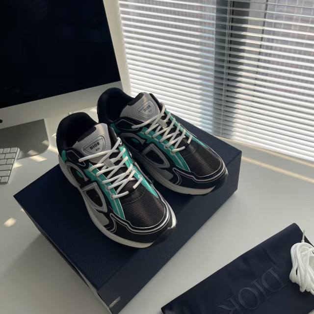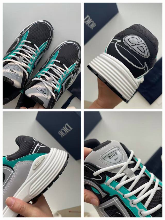 / dio* 迪奥 :高版本 。官网同步发售。情侣款。本季全新推出d家b30 低帮运动鞋。鞋面采用牛皮拼接鞋面搭配网眼织,饰以反光cd30图行标志 原版网布内里 凸