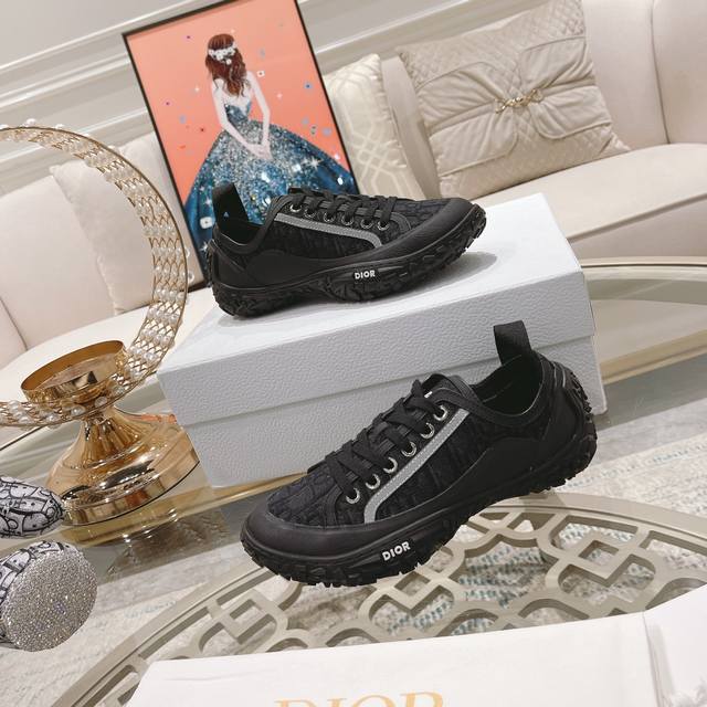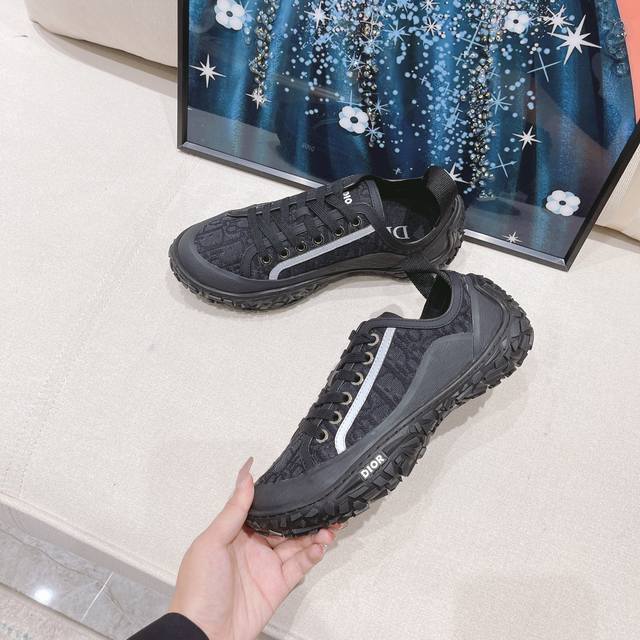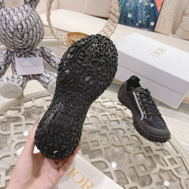 Dior老花字母绑带休闲运动鞋 低帮 高邦 此款休闲鞋采用印花网眼织物精心制作,搭配同色调软橡胶大底,大底侧边饰以品牌Logo,打造经典造型。穿着舒适,可搭配各