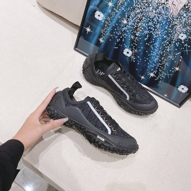 / Dior老花字母绑带休闲运动鞋 低帮 高邦 此款休闲鞋采用印花网眼织物精心制作,搭配同色调软橡胶大底,大底侧边饰以品牌Logo,打造经典造型。穿着舒适,可搭配各