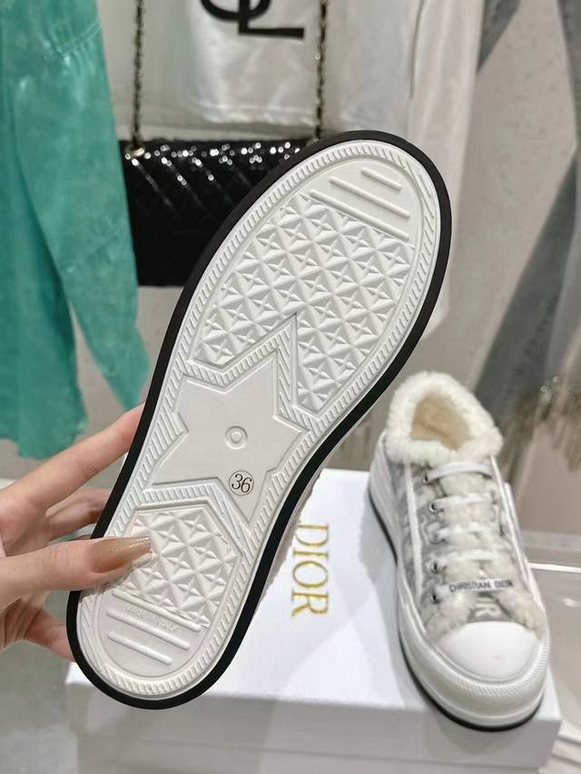 Dior迪奥刺绣厚底毛里休闲鞋 毛鞋 ' 迪奥老花刺绣 羊毛厚底帆布鞋 休闲运动鞋 这款 Walk'n'Dior 厚底运动鞋是一款时尚单品,提升该系列的格调。Oblique 印花棉质刺绣鞋面,搭配舒适厚底、鞋舌和 Christian Dior Paris 标志鞋带。可为各式休闲造型增添时髦气质 原版定制进口Oblique 印花刺绣面料 进口柔软羊皮里内里 原版独家开模TPU材质大底 底厚4.5CM Size: 女款35-41 41定做不退换