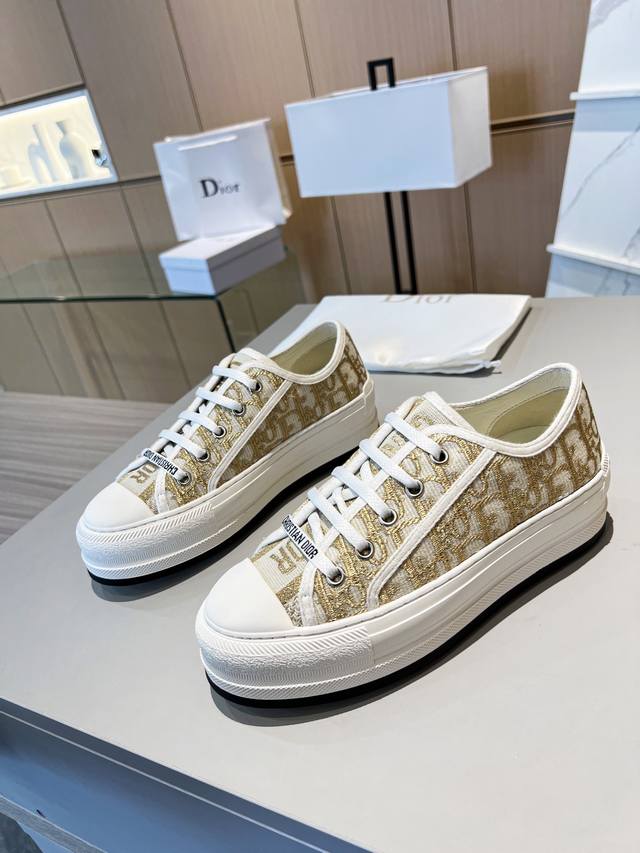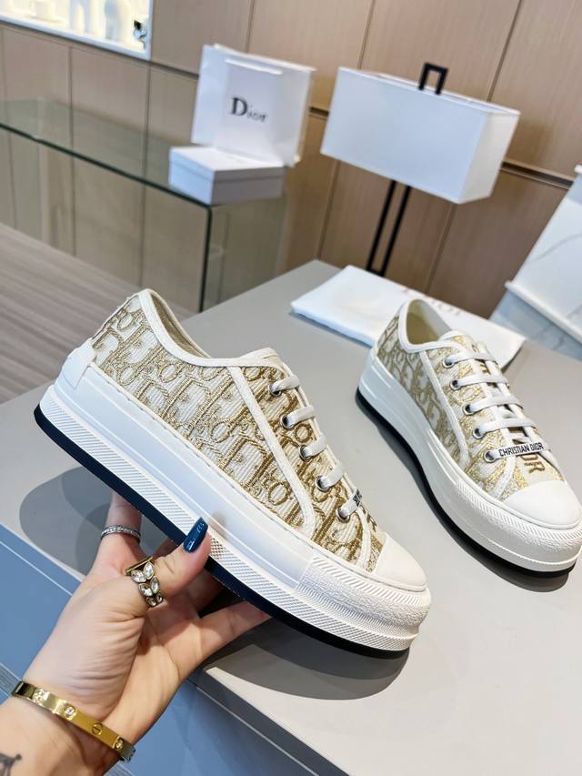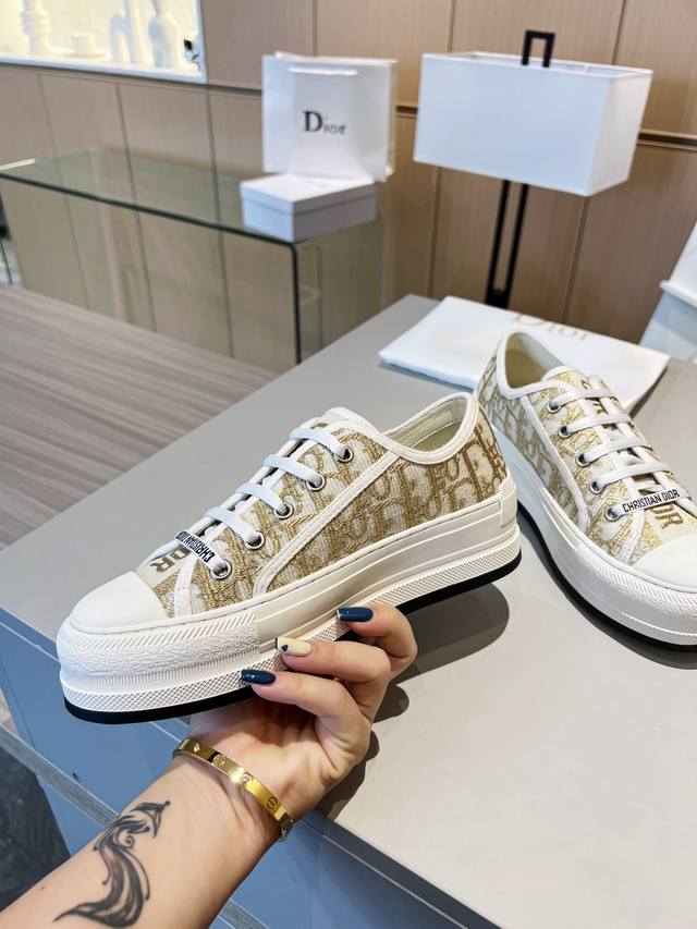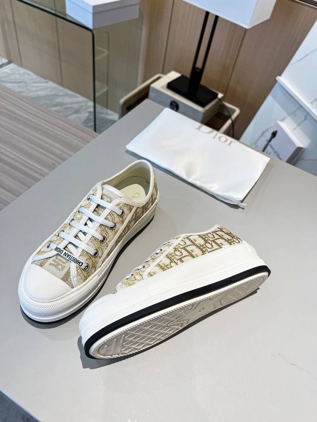 Dior迪奥新款老花刺绣帆布增高厚底鞋,经典老花配上厚底系列,时尚舒适还拉长腿部线条,秒变大长腿,矮子乐系列,今年夏天的百搭单品,金智秀同款超多网红明星种草,上脚炒鸡百搭,脚感非常舒适!面料:经典刺绣老花 内里:进口丝绸羊里,垫脚:原版牛里垫脚,大底:橡胶。码数35-41。