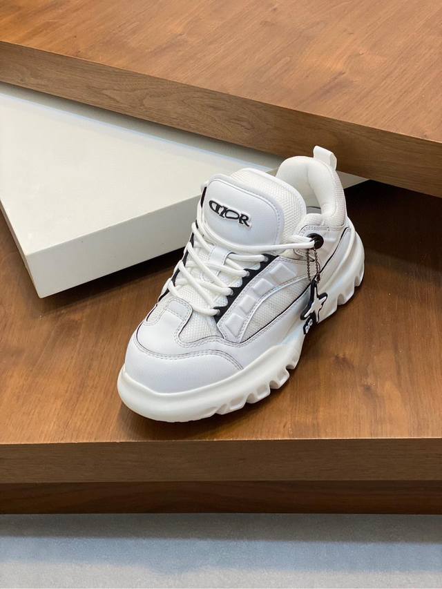 原版购入开发做货这diorchrono运动鞋采用白色和黑色网眼织物搭配皮革效果镶片,两侧的cd标志、鞋舌上的星星补丁和鞋跟的 Dior 标志,诸多细节彰显格调 双色鞋带,轻盈鞋底搭配星星装饰,可全年打造休闲造型,与各式休闲或优雅单品相得益彰