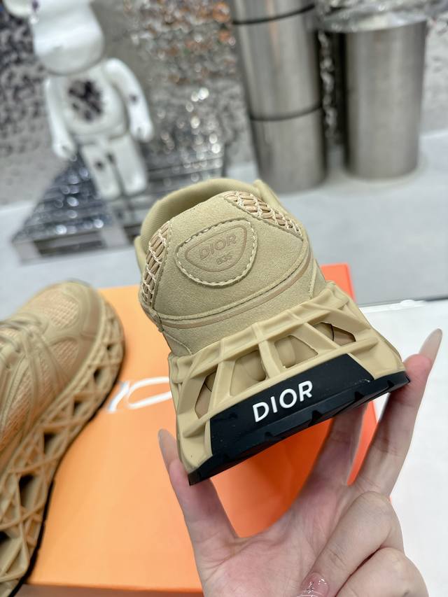 顺应复古市场的趋势的 Dad Shoes风格鞋款鞋舌上的dior标志 也注明了这双鞋是运用了质感细腻的皮革和网眼布面材质拼接成鞋身,鞋身两侧有显眼的字母cd 表明身份,鞋身多处线条勾勒细节 让鞋子看起来不那么单调、复古立体感十足!配送专柜精美包装