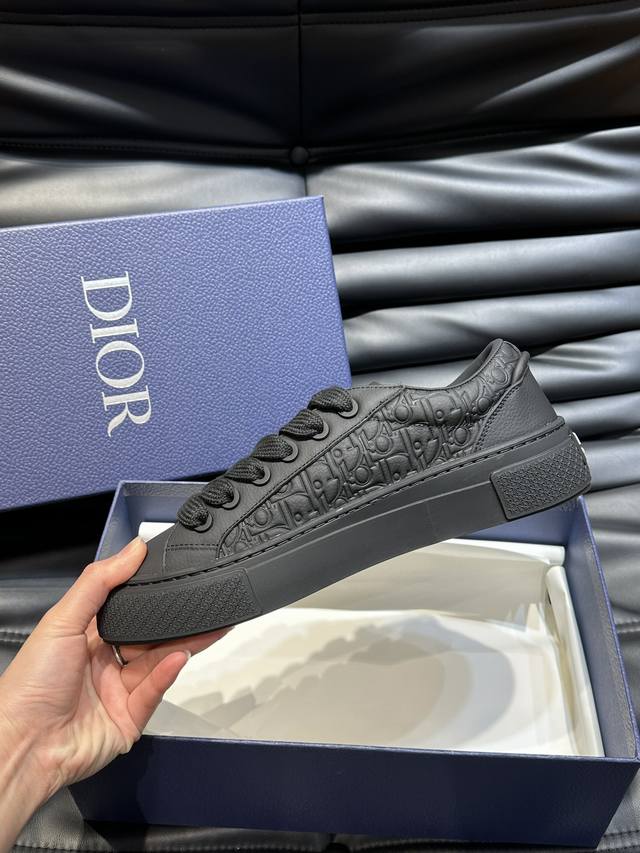 dio~R 这款 B33 运动鞋全新演绎经典的网球鞋,时尚廓形突显厚重质感。采用牛皮革精心制作,饰以 Oblique 印花,搭配饰以 Dior 标志的加垫鞋舌、马海毛宽鞋带和哑光饰面同色调黄铜孔眼,别具一格。Oblique 印花效果橡胶鞋底,后侧饰以对比鲜明的 Dior 30 Avenue Montaigne 标志提升格调。可为休闲造型增添时尚气质。