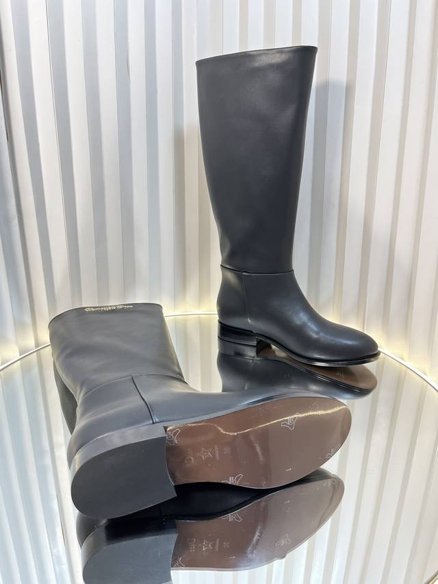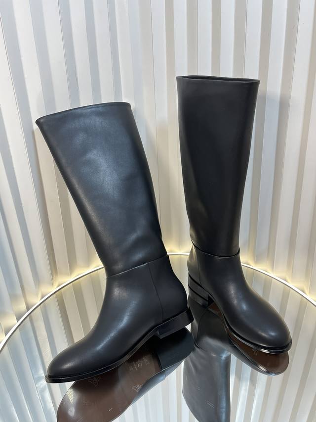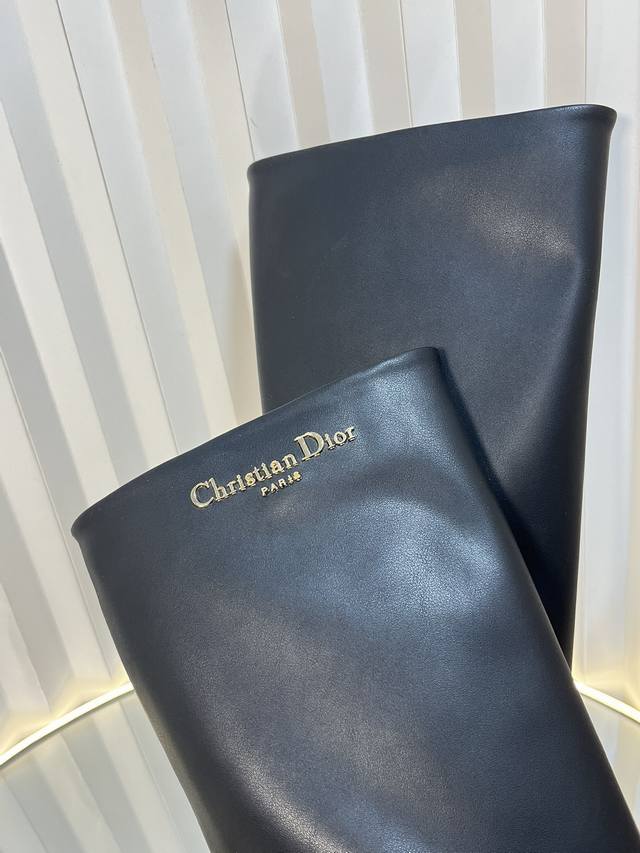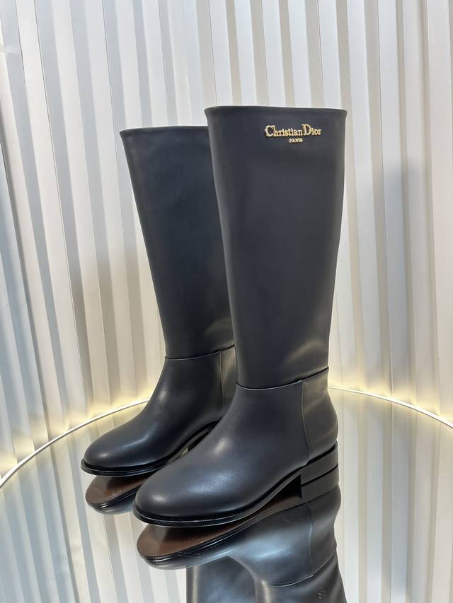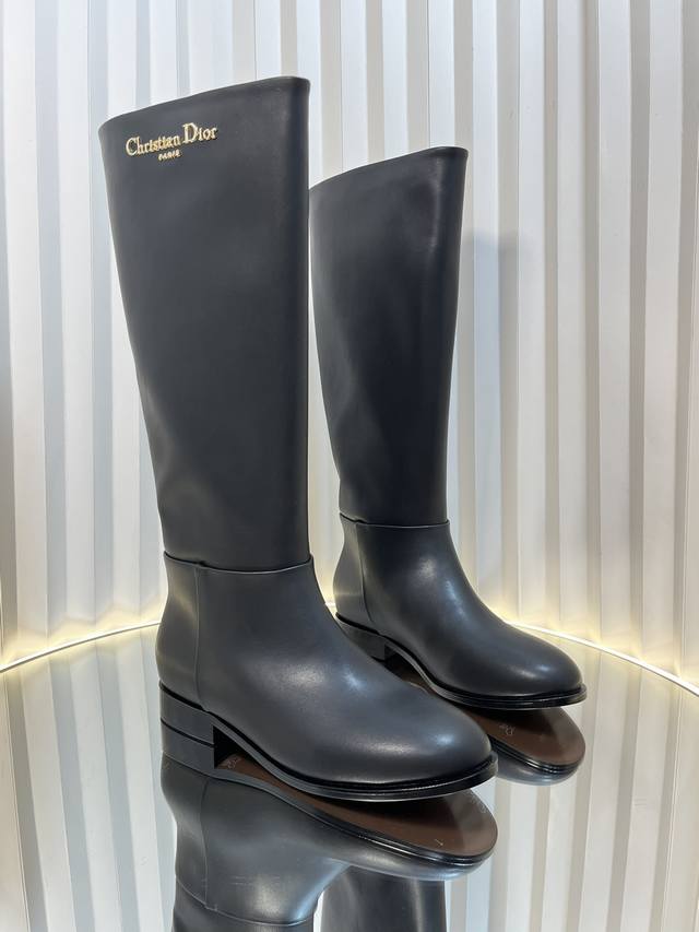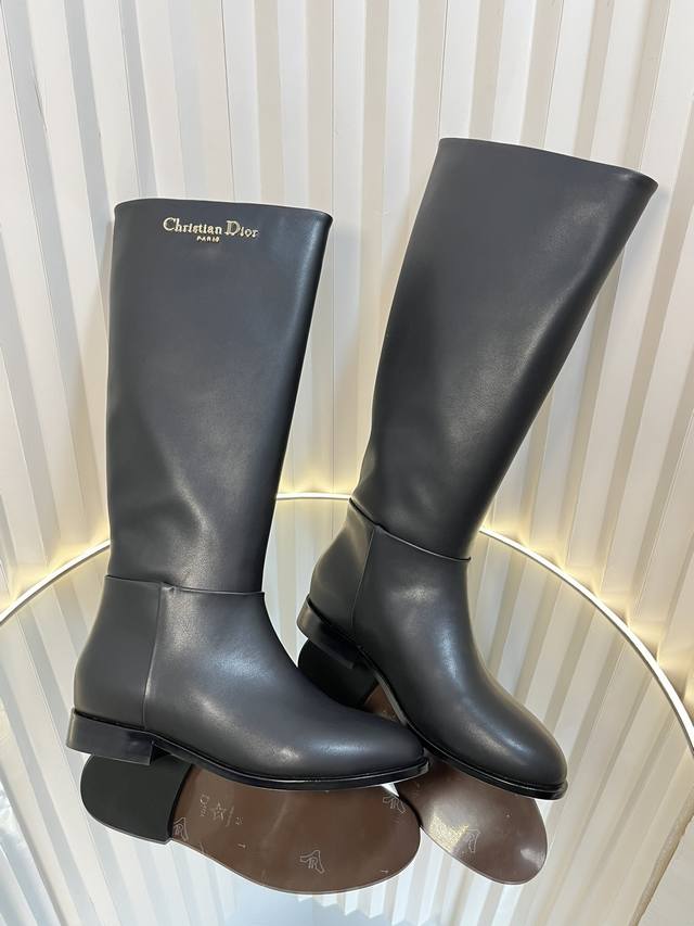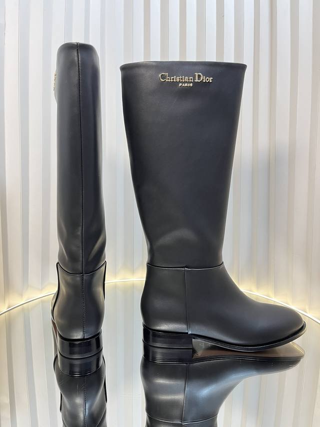 dior 迪奥2024秋冬新款d-Town系列朋克风女靴 明星同款cd字母logo五金扣机车及膝长靴 低跟圆头一脚蹬骑士高筒靴