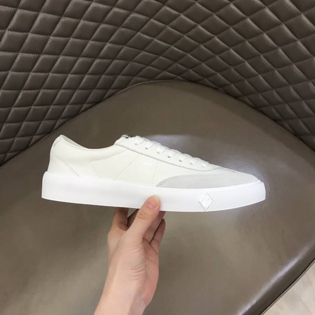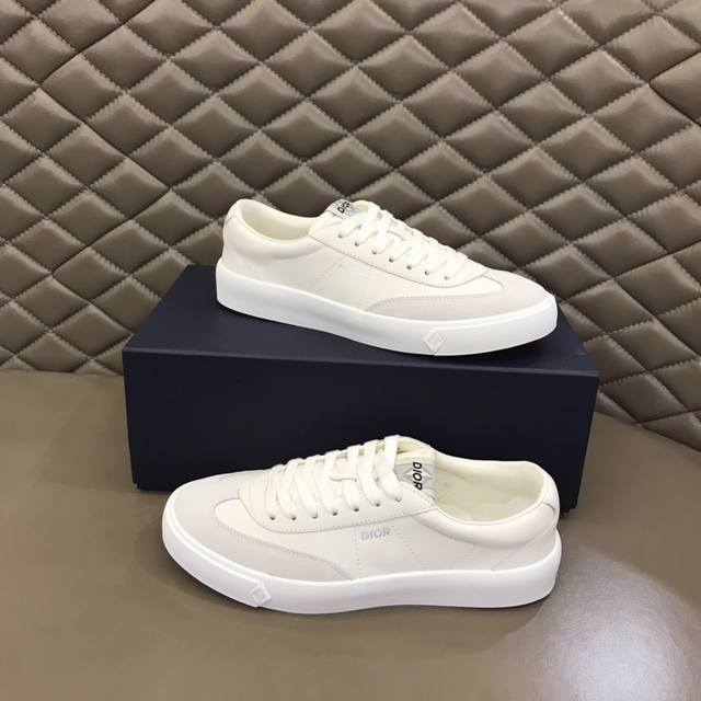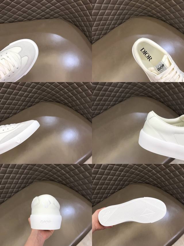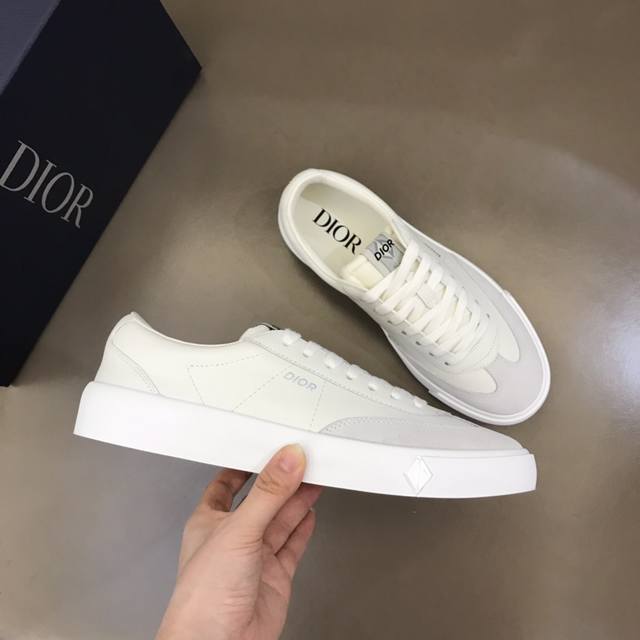 Dio~R B101男士休闲运动鞋,是本季新款单品,彰显经典设计 采用迪奥灰光滑牛皮革精心制作,搭配同色调磨砂革镶片,加垫鞋舌、鞋跟和侧面均饰以cd Diamond和dio*标志 搭配同色调纹理外底,可与牛仔裤或西装长裤搭配,打造休闲造型