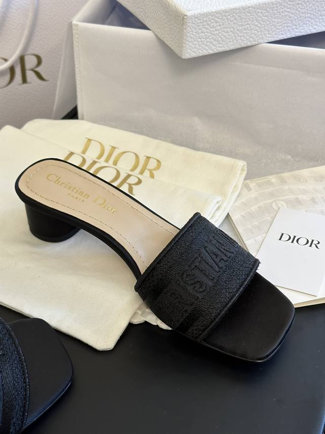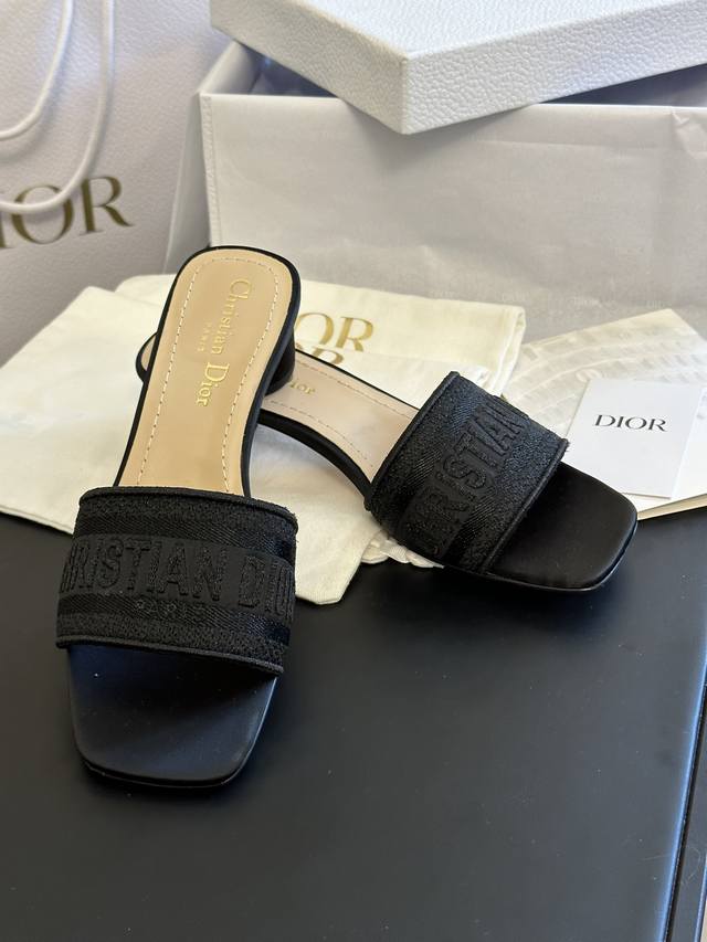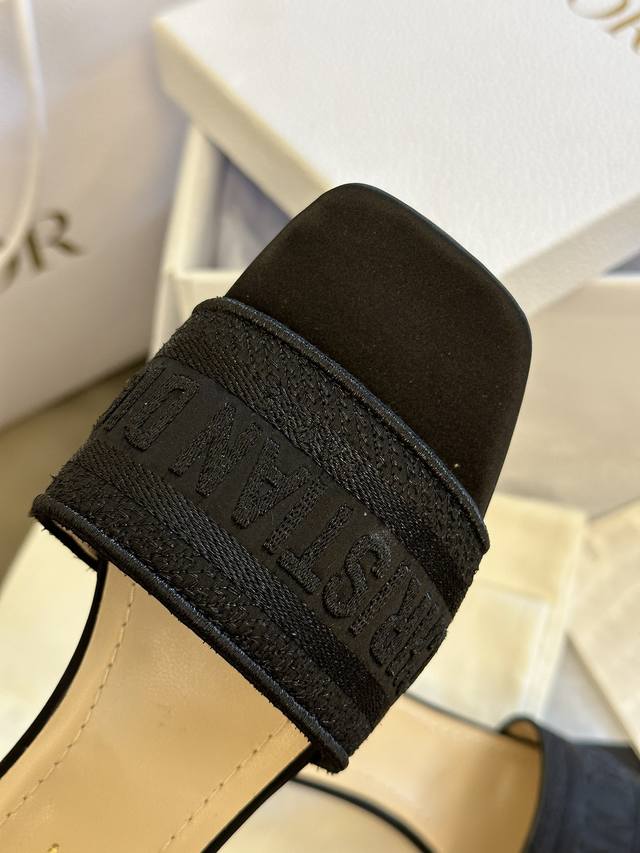 P直销 Dior 迪奥 2025 Dway春夏新款一字刺绣拖鞋版本 Cd字母Logo立体刺绣圆柱跟凉鞋 方头粗跟果冻色露趾拖鞋 鞋面:原版一致高温水溶棉质电绣科