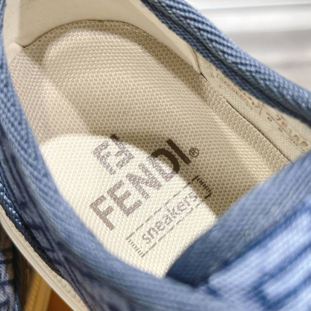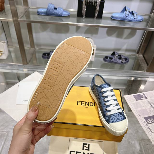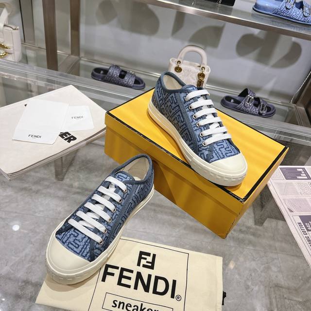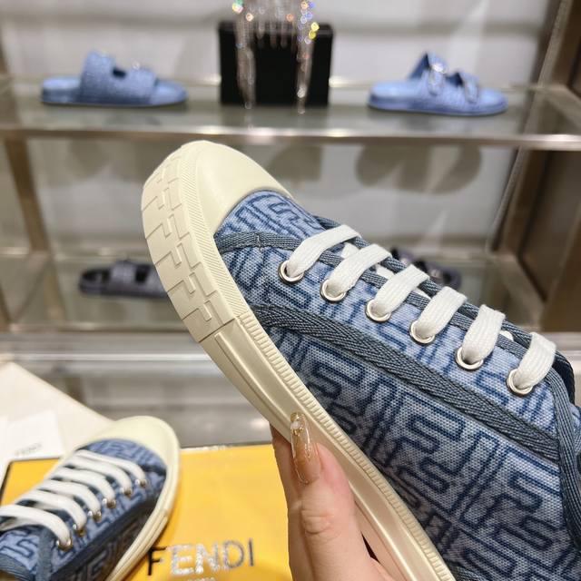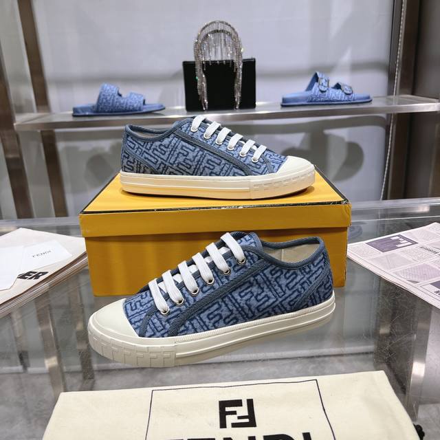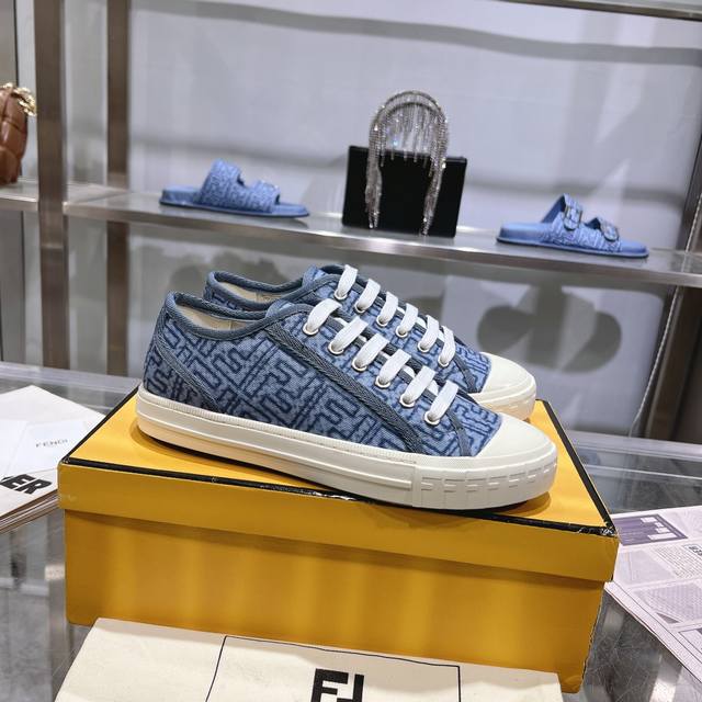 Fendi最新爆款,Domino系列运动鞋,仿旧蓝色牛仔布材质饰有缝线Ff图案刺绣,原版开模大底,35-45