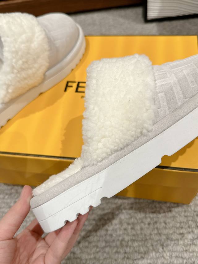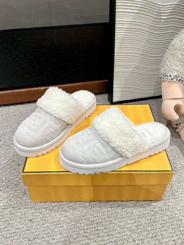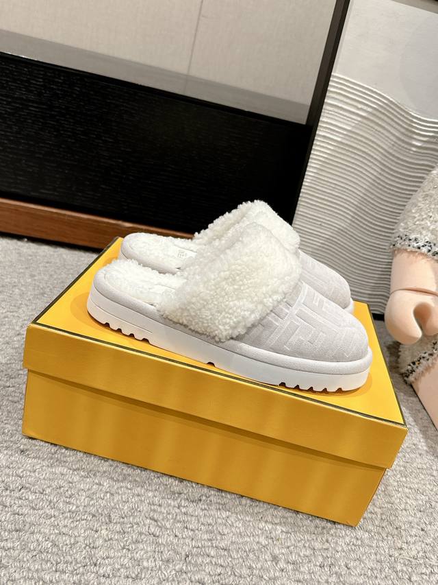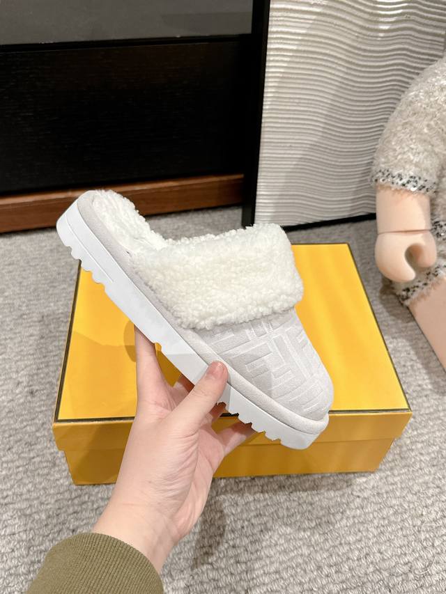 这款半拖皮面压花+羊羔毛搭配发泡材质鞋底,