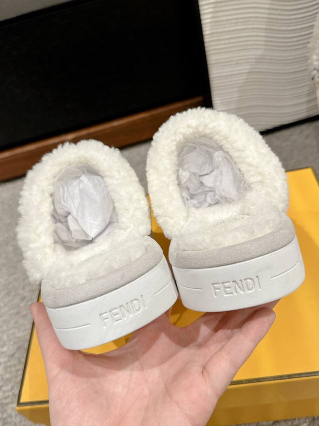 鞋面牛皮压花 双f老花面料+羊羔毛